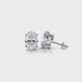 Oval Lab grown Diamond Claw Prong Stud Earring 14k White Gold 4.04 Ctw.