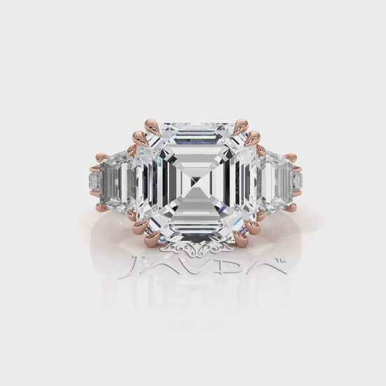 Asscher cut Lab Grown Diamond Engagement 3 Stone Ring IGI Certified 14k White Gold 8.7 Ctw.