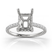 Hidden Halo U Pave Emerald Semi Mount Diamond Engagement Ring 14k White Gold 0.47Ct