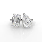 2 Stone Emerald Pear Cut Diamond Engagement Prong Set Ring 14k White Gold 4.63 Ctw. - Em 2.57ct. / PS 2.06ct. / 14k White Gold