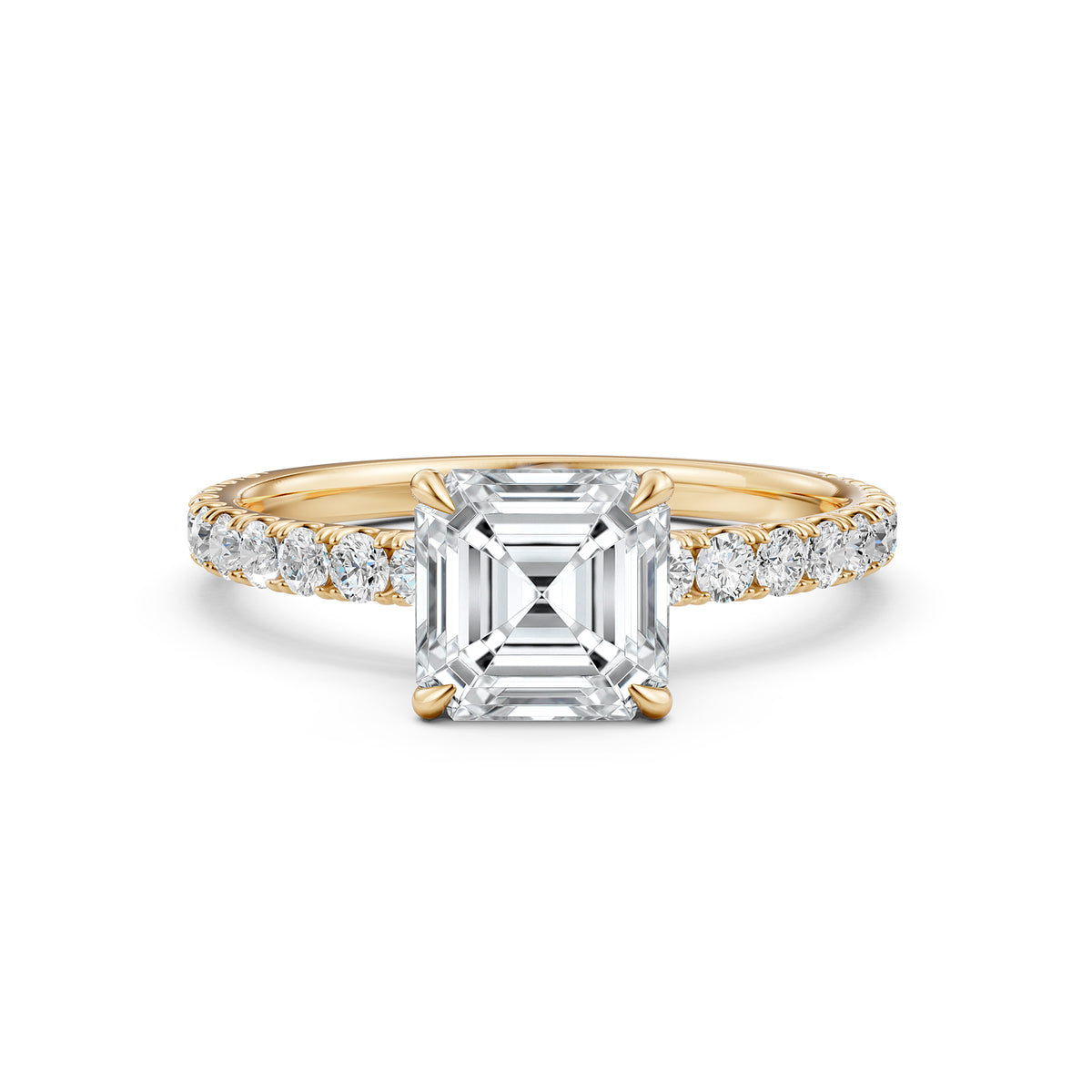 Asscher Diamond Engagement U Cut Prong Setting Ring 14K White Gold