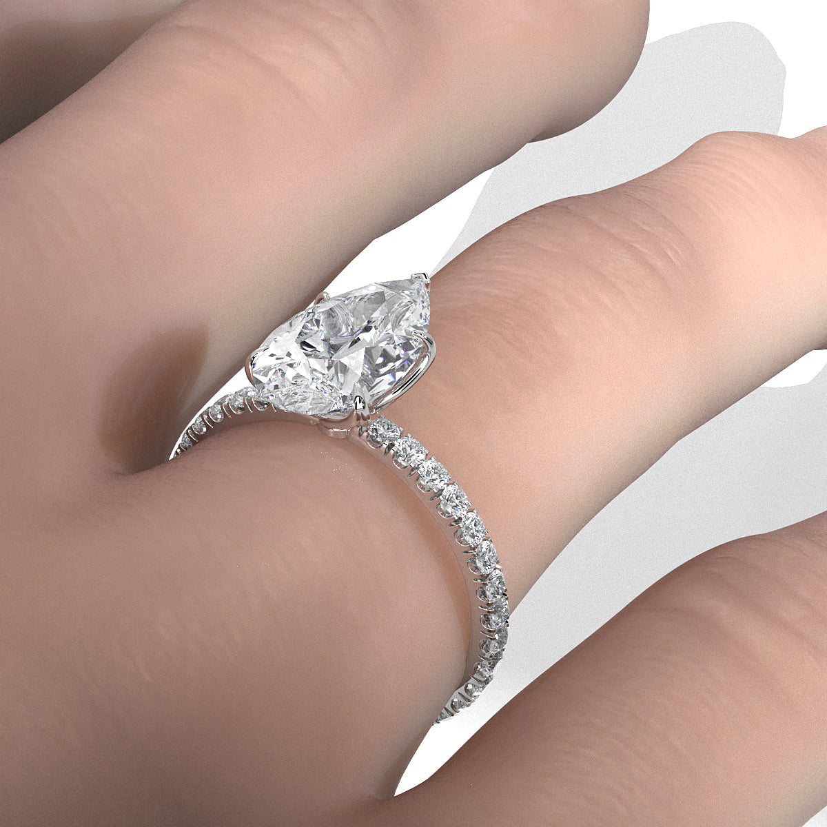 French Pave Set Lab Grown Diamond Engagement Ring 2.50 Ctw. - Lab Grown / Round / 14k White Gold