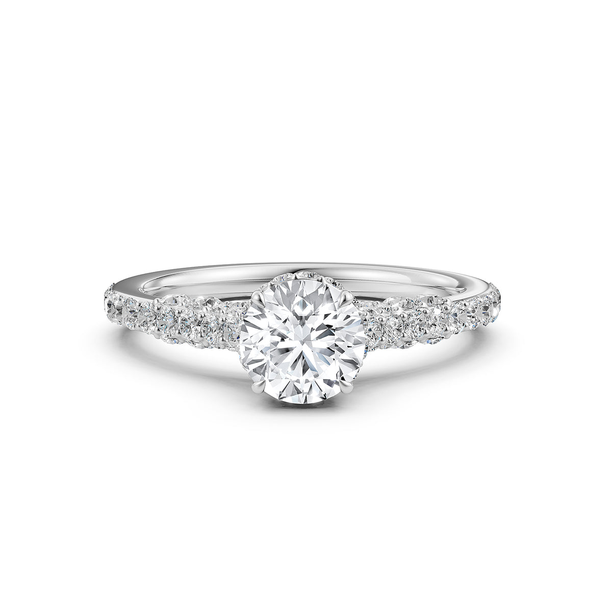 Round Lab Grown Diamond Engagement Pave Set Ring 1.15 Ctw - Lab Grown / Round / 14k White Gold