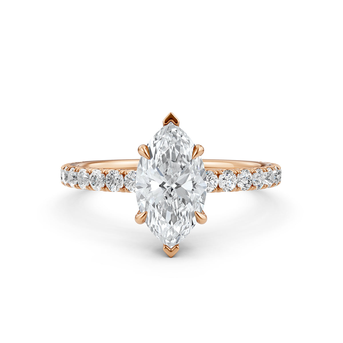Marquise Lab Grown Diamond Engagement French U Cut Pave Setting Ring - Lab Grown / 1.00 Ctw. / 14k White Gold