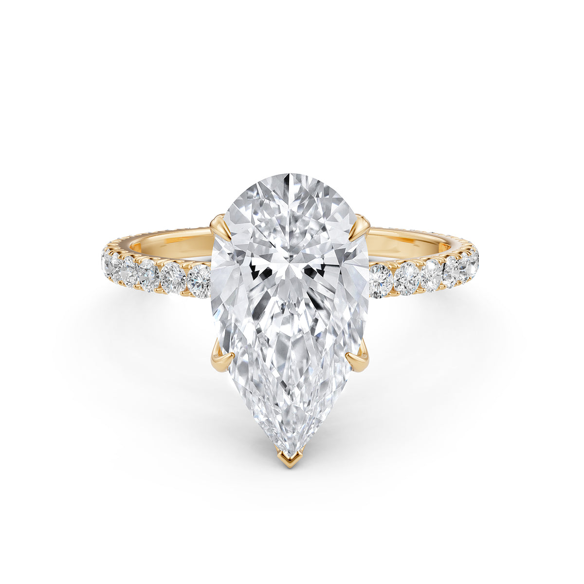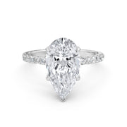 Pear Lab Grown Diamond Engagement French U Cut Pave Set Ring - Lab Grown / 1.00 Ctw. / 14k White Gold