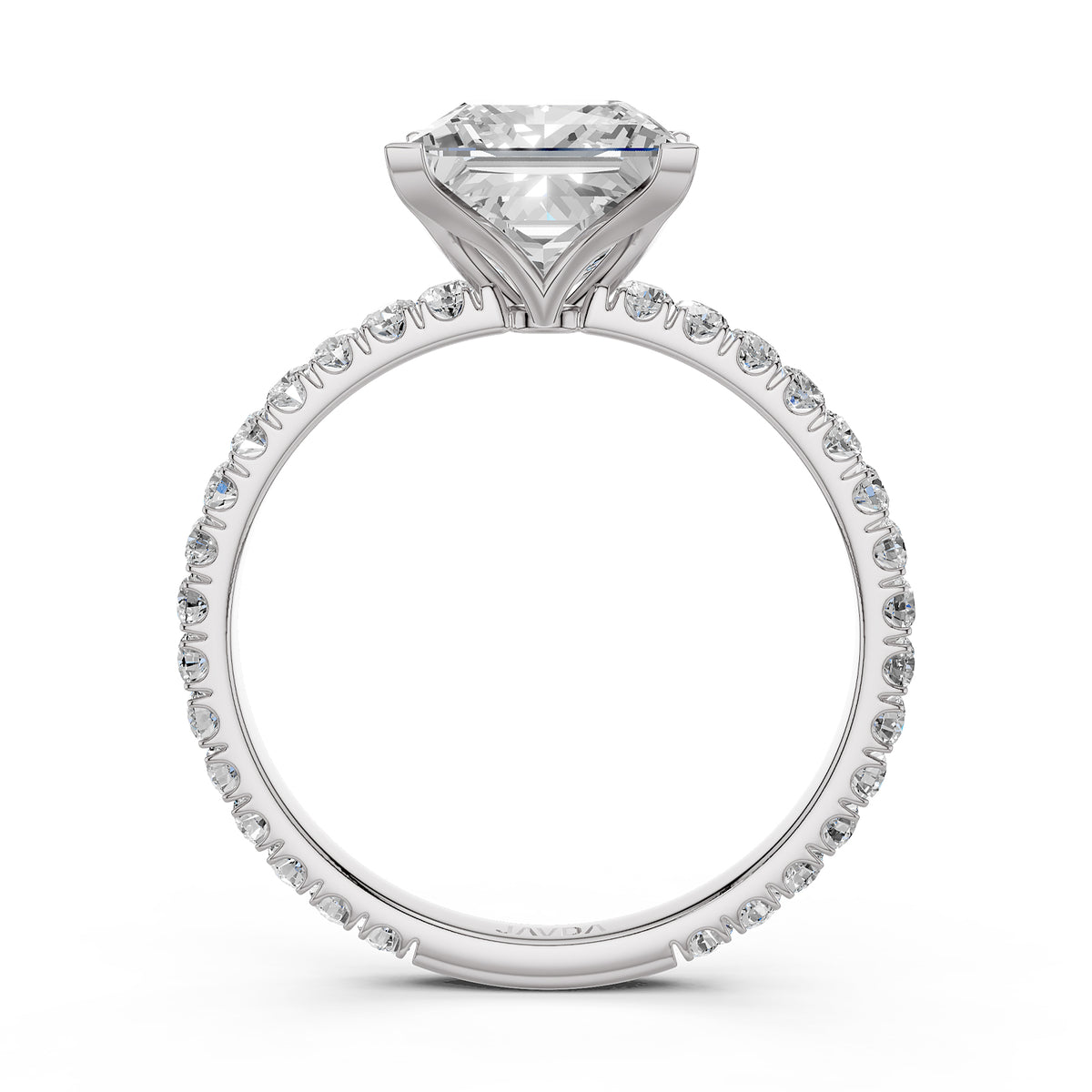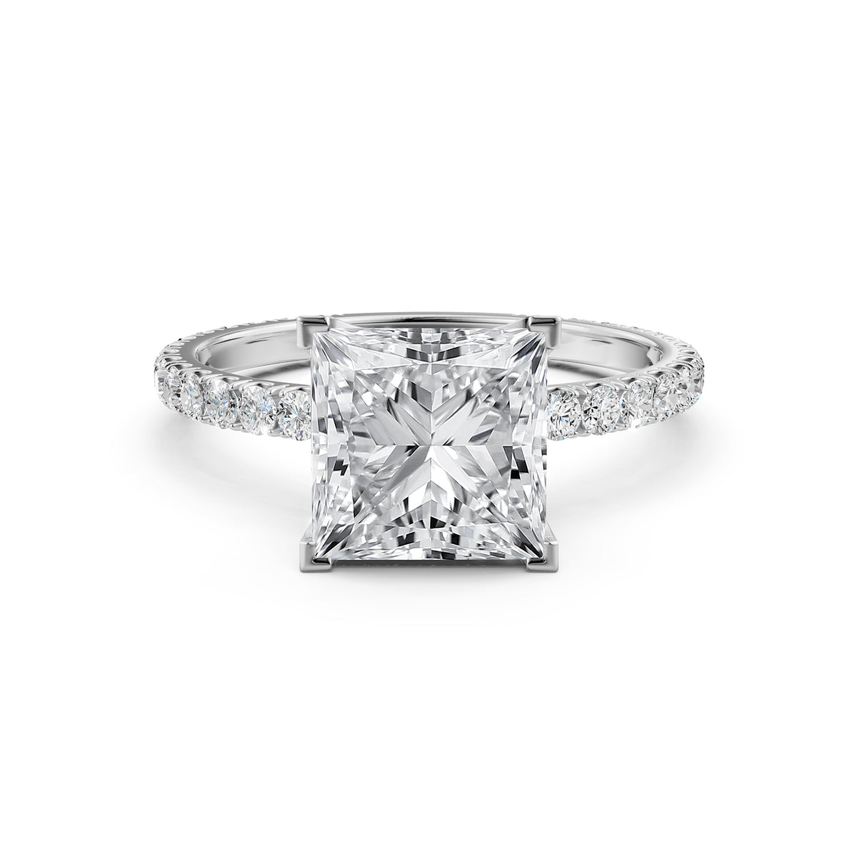 Princess Lab Grown Diamond Engagement French Pave Set Ring - Lab Grown / 1.00 Ctw. / 14k White Gold