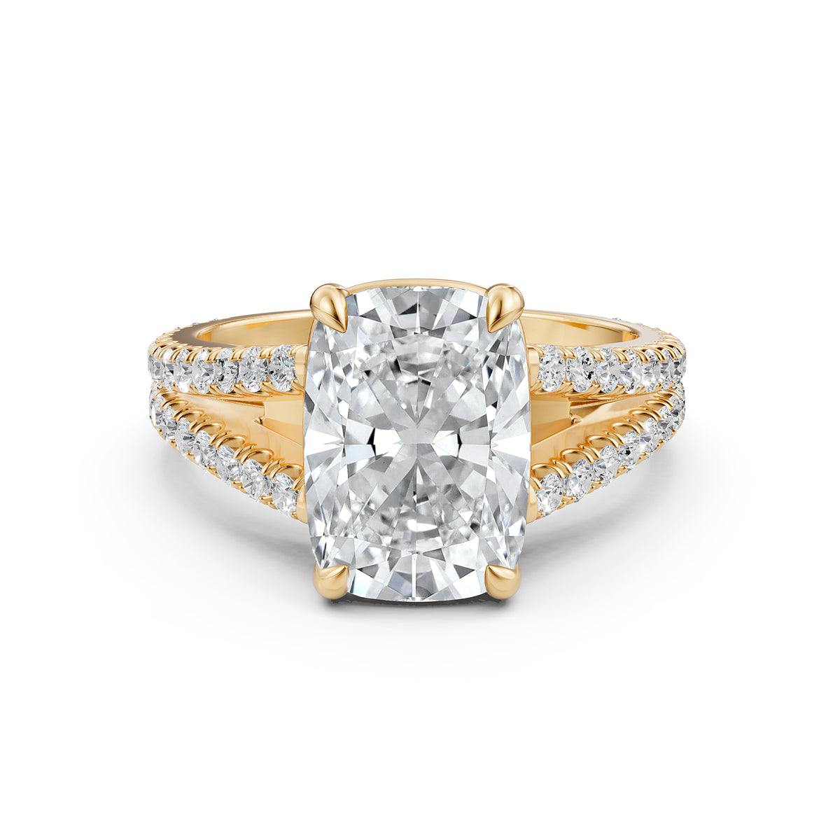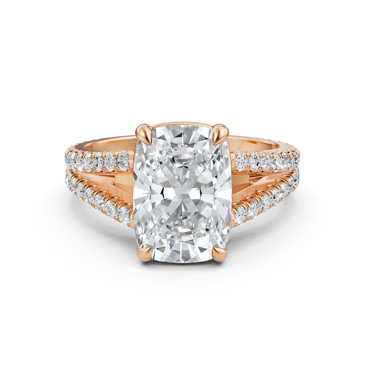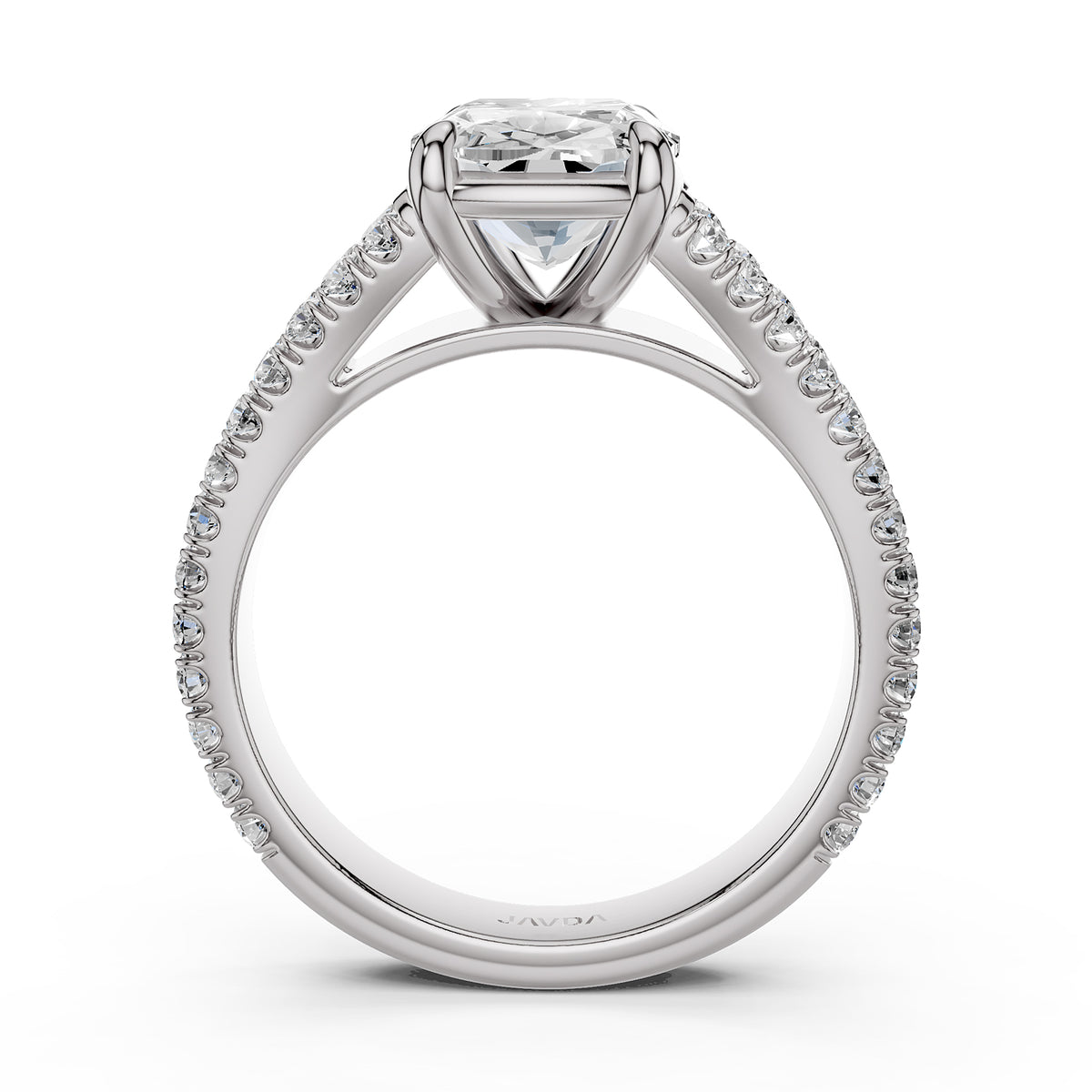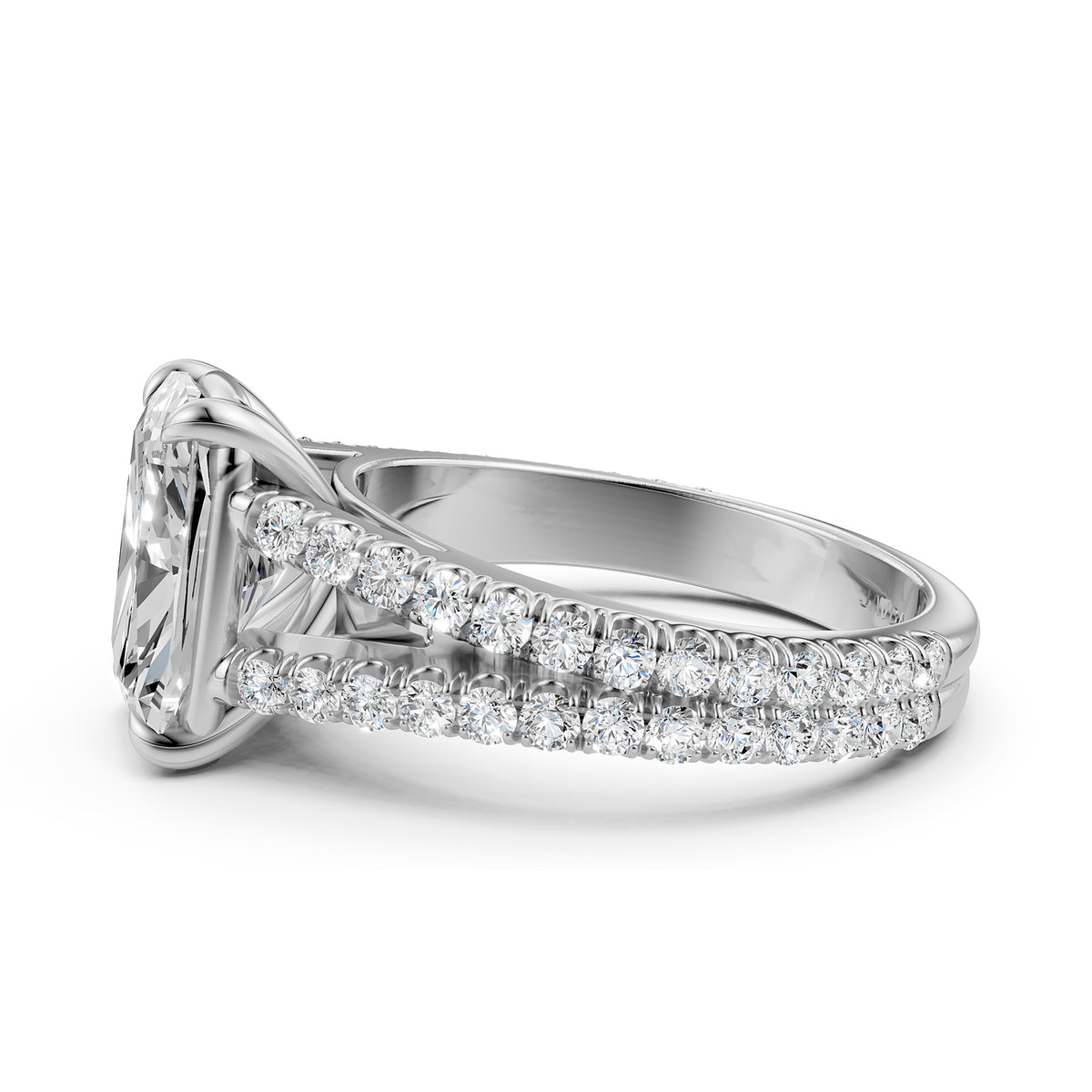 Split Shank Cushion Lab Grown Diamond Engagement French U Cut Pave Set Ring - Lab Grown / 1.00 Ctw. / 14k White Gold