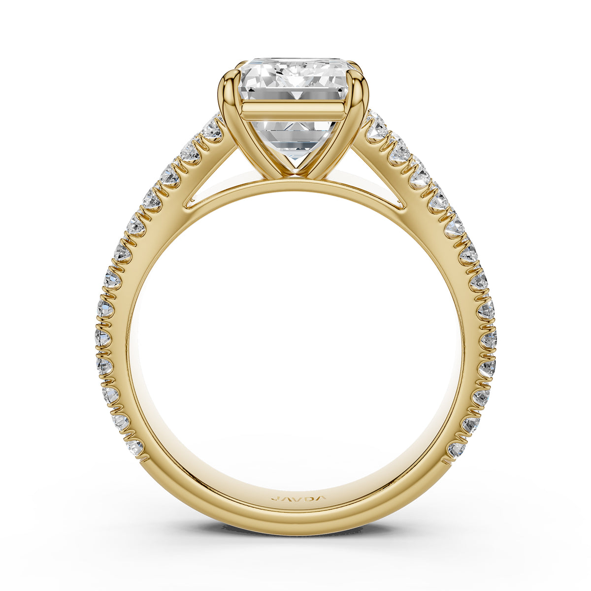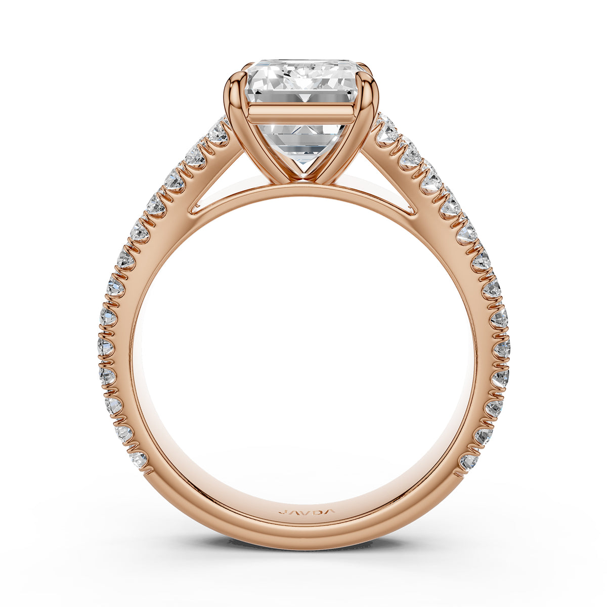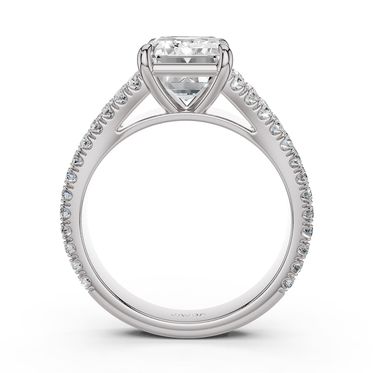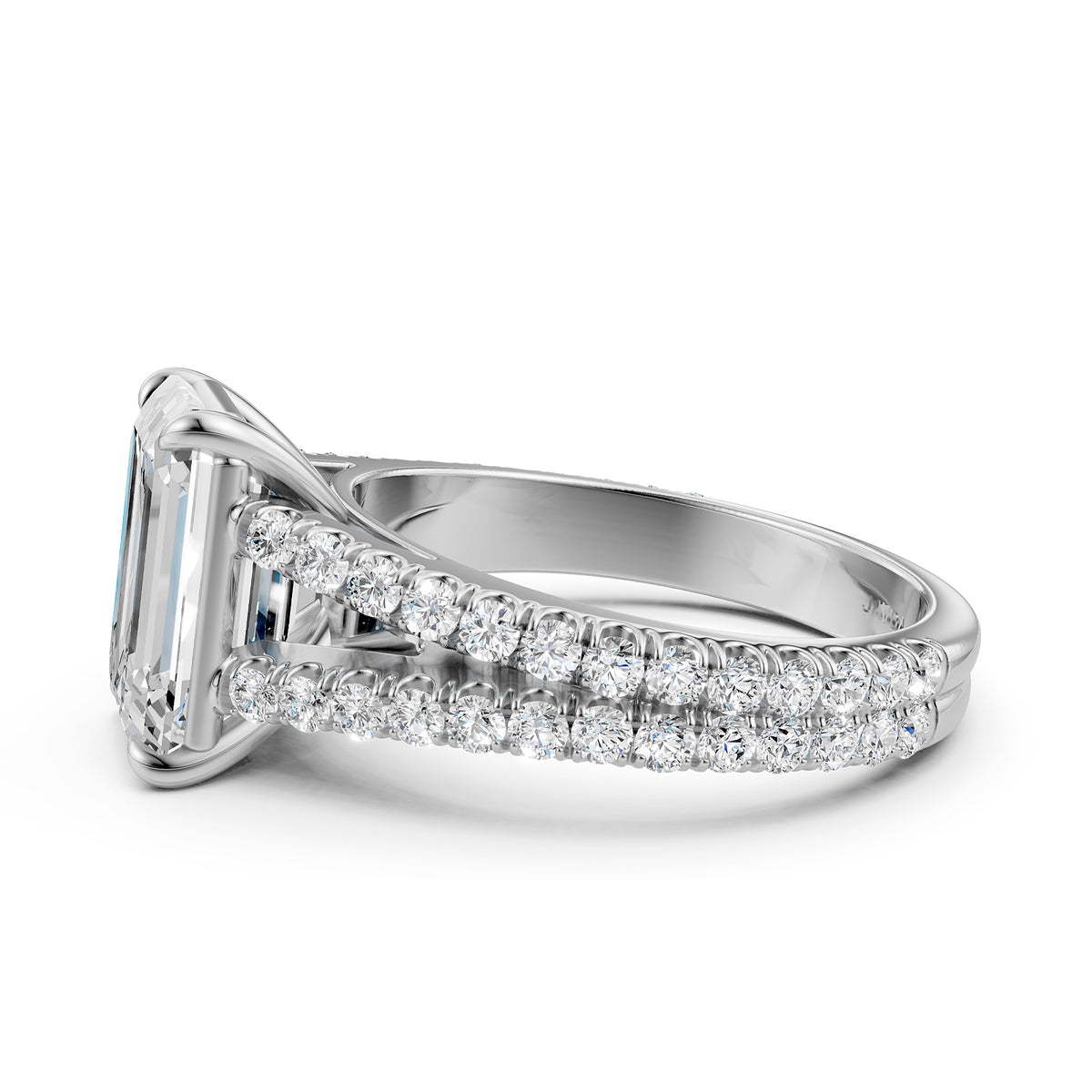 Split Shank Diamond Engagement Emerald Ring French U split Pave Set 14k White Gold