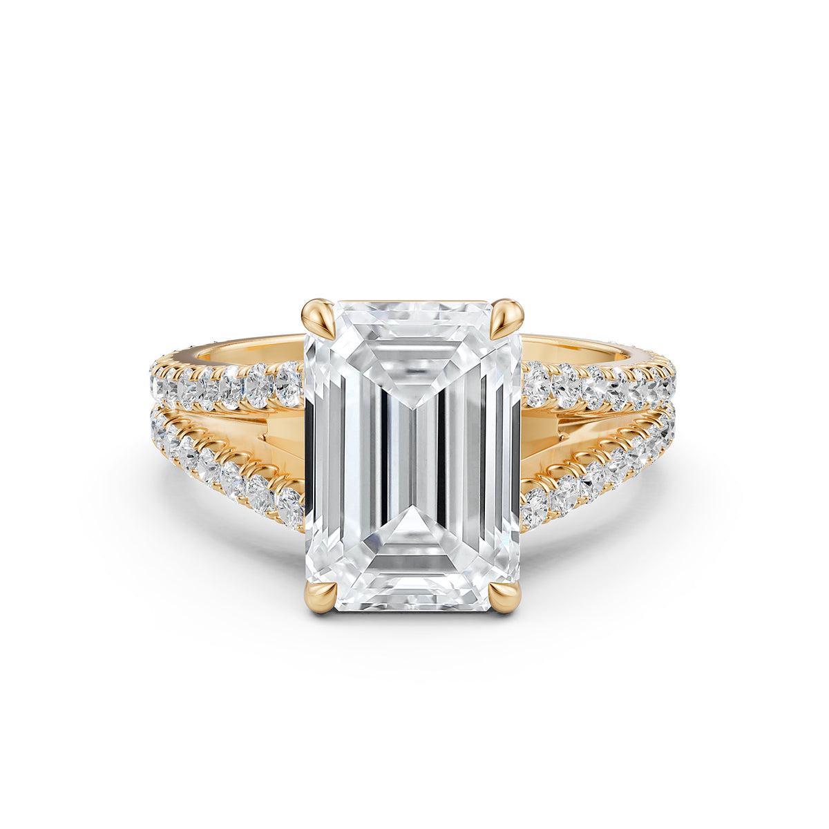 Split Shank Diamond Engagement Emerald Ring French U split Pave Set 14k White Gold - Lab Grown / 1.00 Ctw. / 14k White Gold