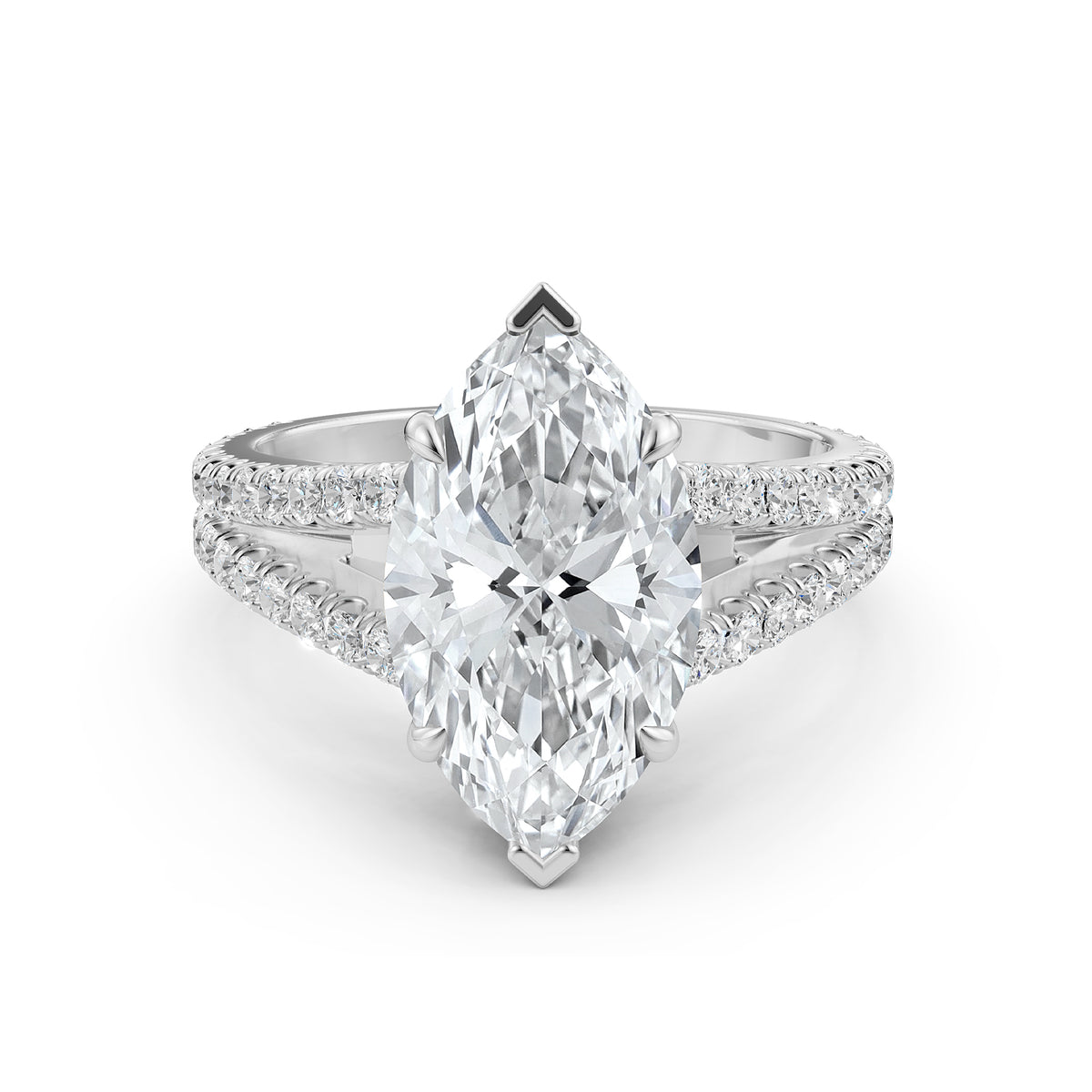 Split Shank Marquise Lab Grown Diamond Engagement French U Cut Pave Set Ring - Lab Grown / 1.00 Ctw. / 14k White Gold