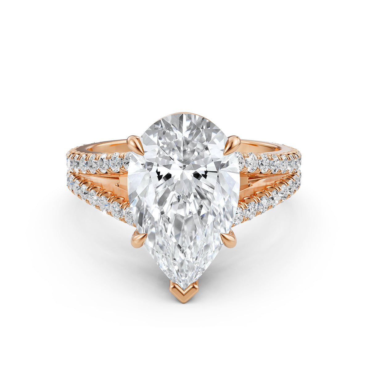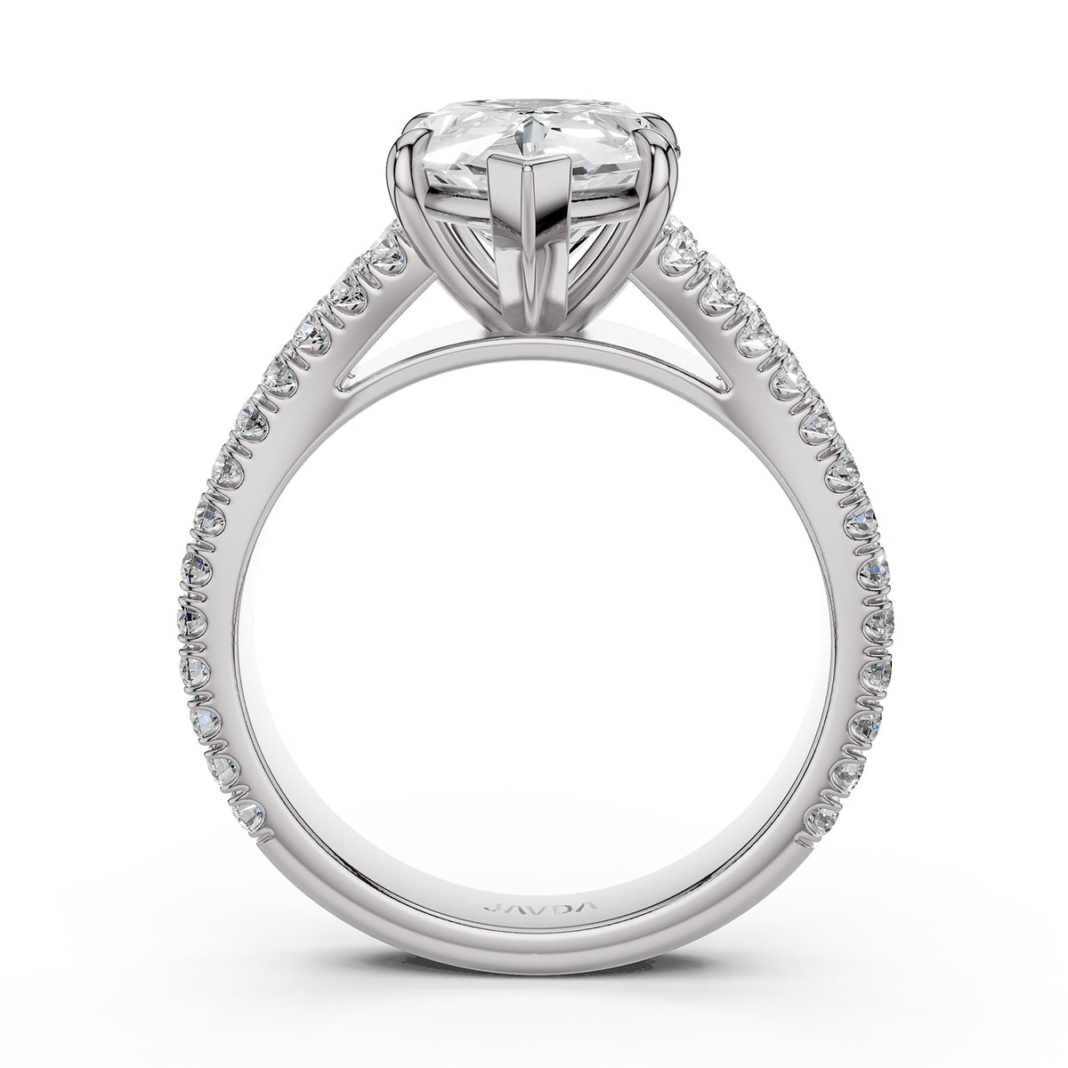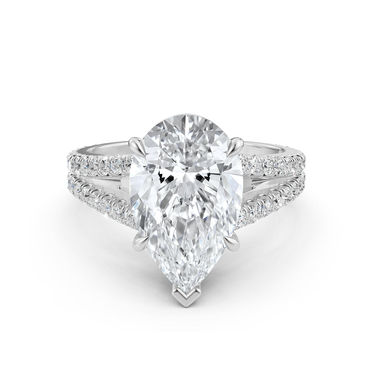 Split Shank Diamond Engagement Pear Ring French U split Pave Set 14k White Gold - Lab Grown / 1.00 Ctw. / 14k White Gold