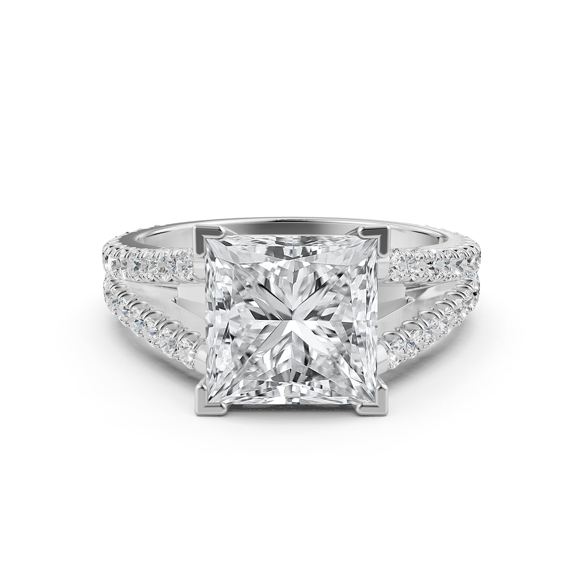 Split Shank Diamond Engagement Princess Ring French U split Pave Set 14k White Gold - Lab Grown / 1.00 Ctw. / 14k White Gold