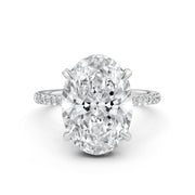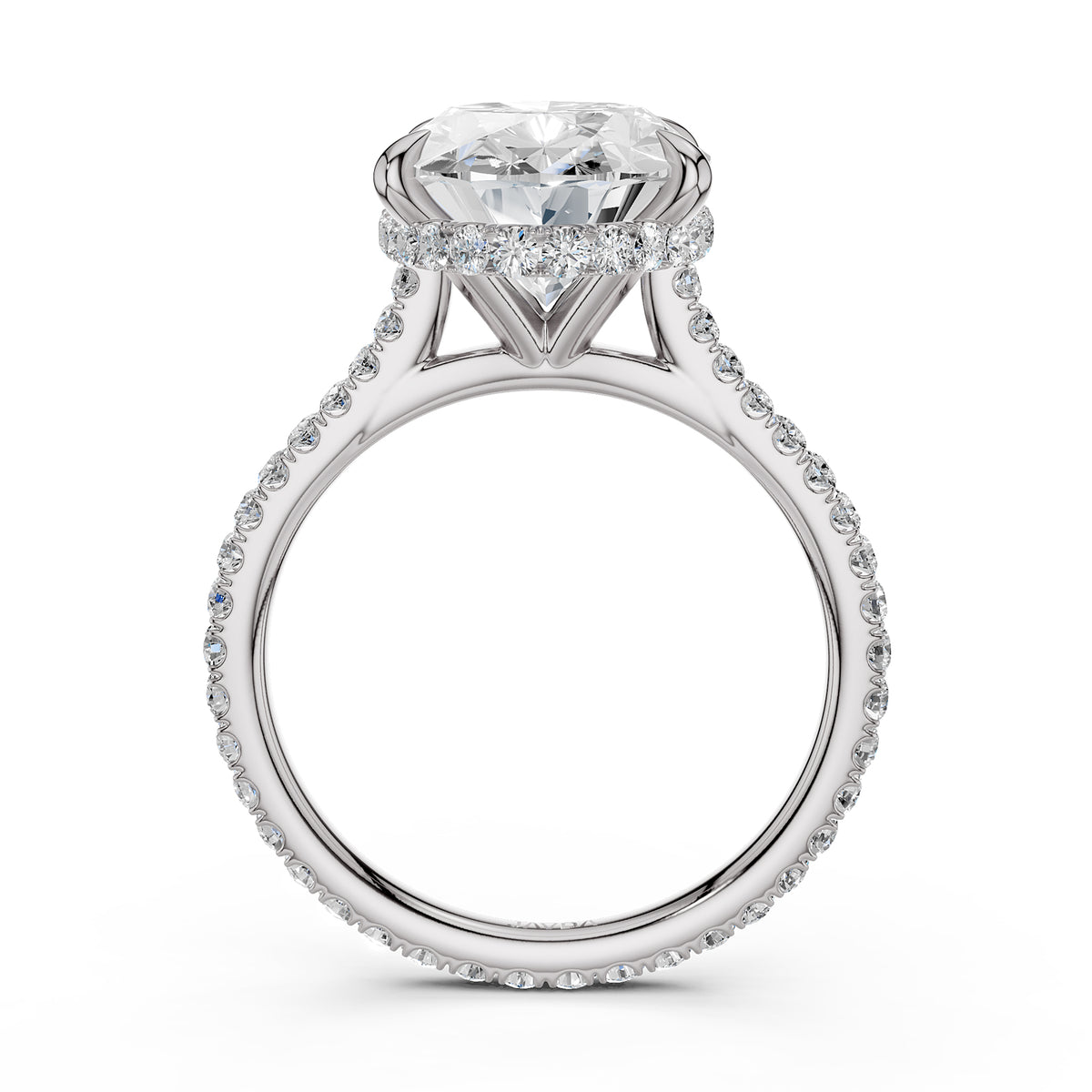 Cathedral Oval Halo French U Pave Set Diamond Engagement Ring - Lab Grown / 1.00 Ctw. / 14k White Gold