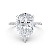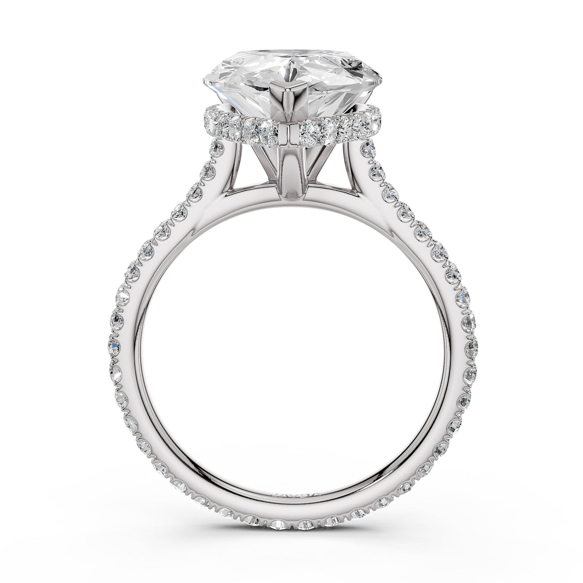 Cathedral Pear Halo French U Pave Set Diamond Engagement Ring - Lab Grown / 1.00 Ctw. / 14k White Gold