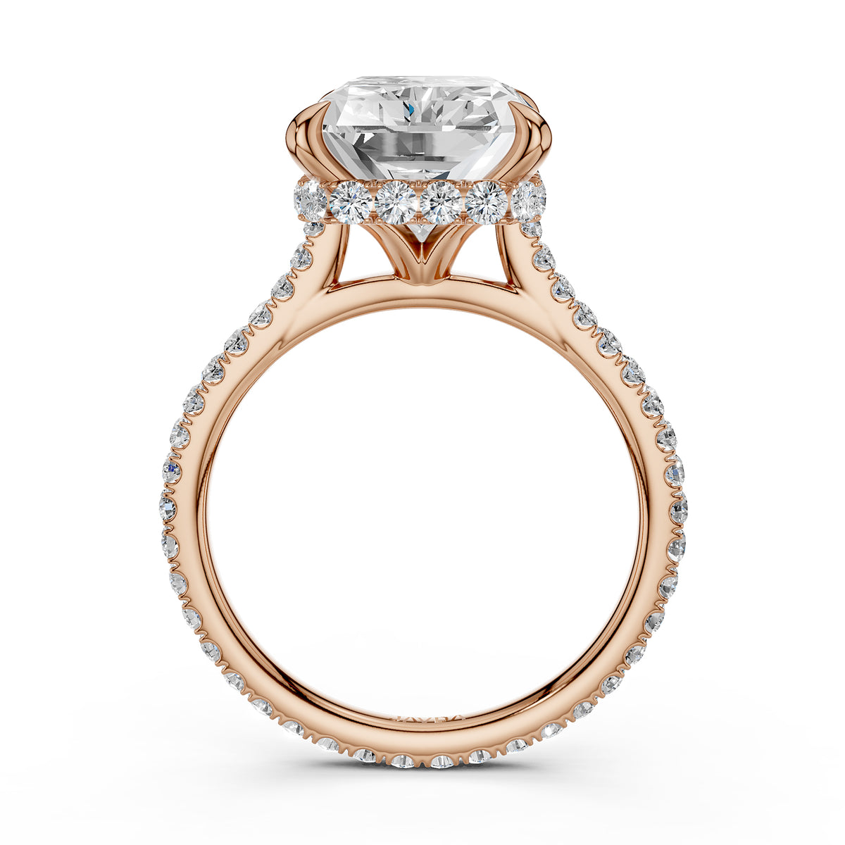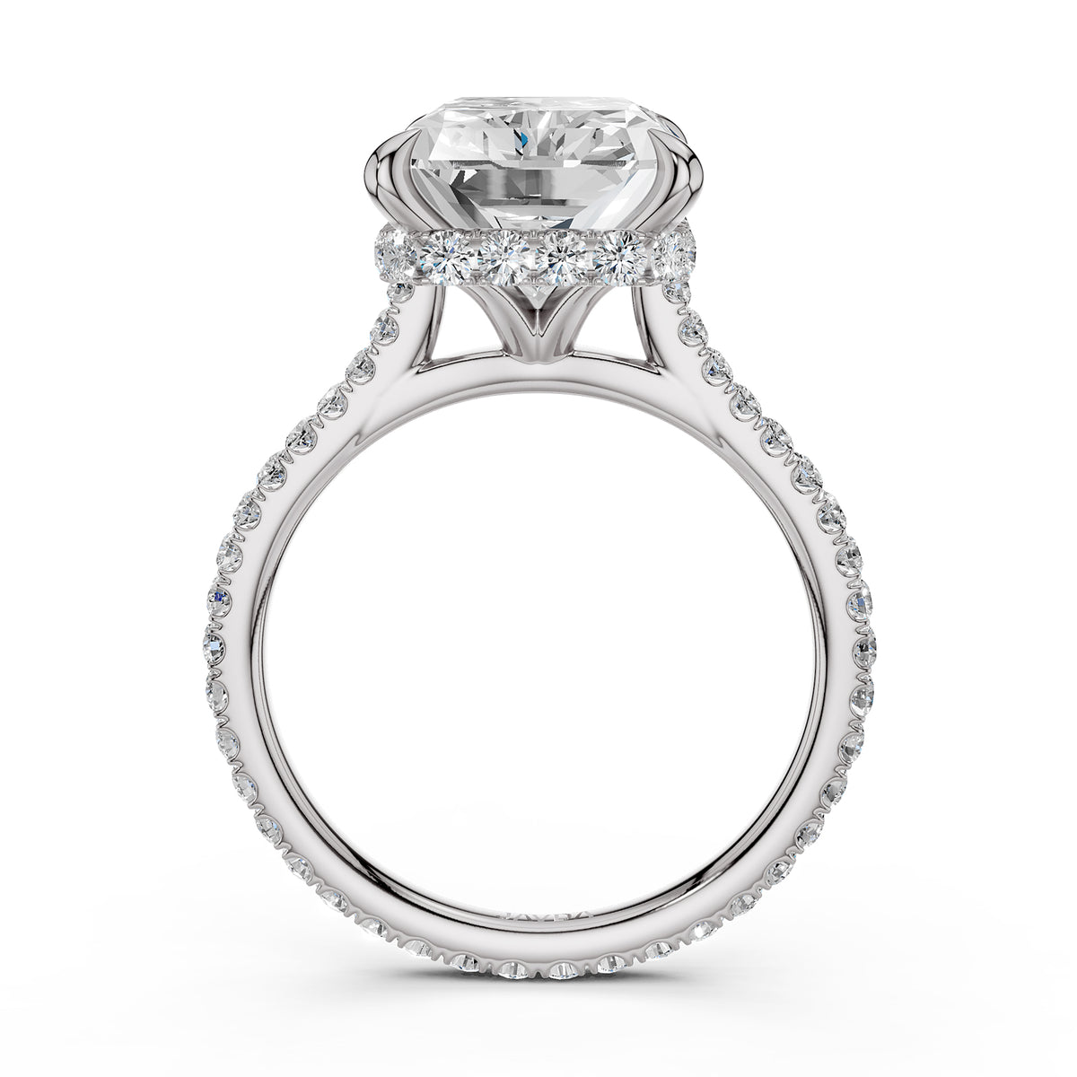 Cathedral Radiant Halo French U Pave Set Diamond Engagement Ring - Lab Grown / 1.00 Ctw. / 14k White Gold