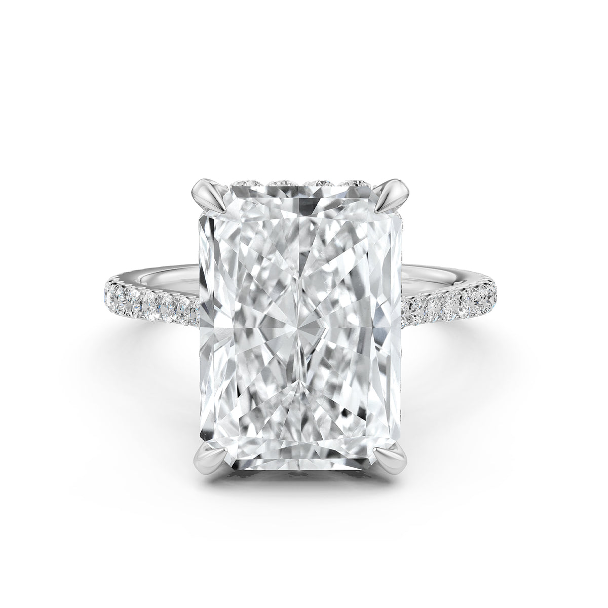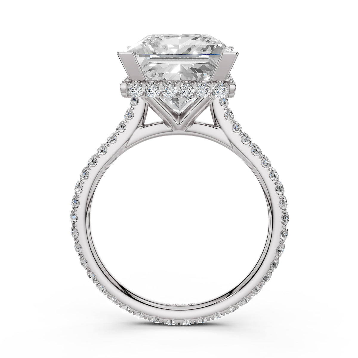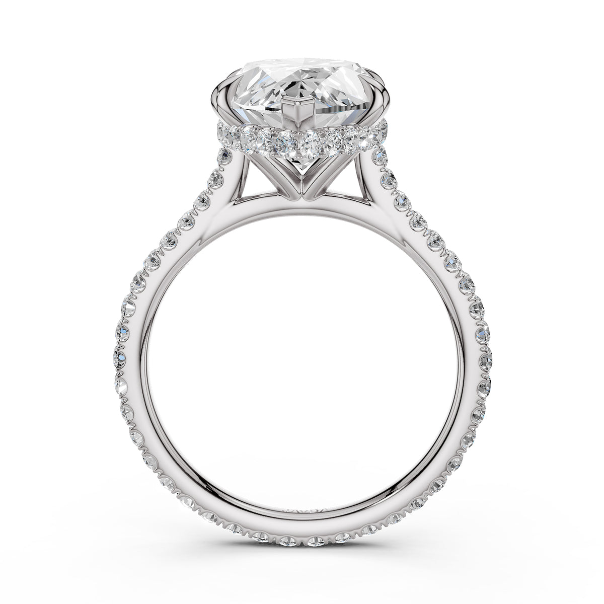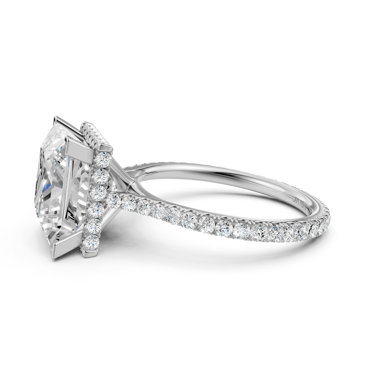Cathedral Style Halo French U Pave Set Lab Grown Diamond Engagement Ring IGI Certified 4.55 Ctw. - Lab Grown / Round / 14k White Gold