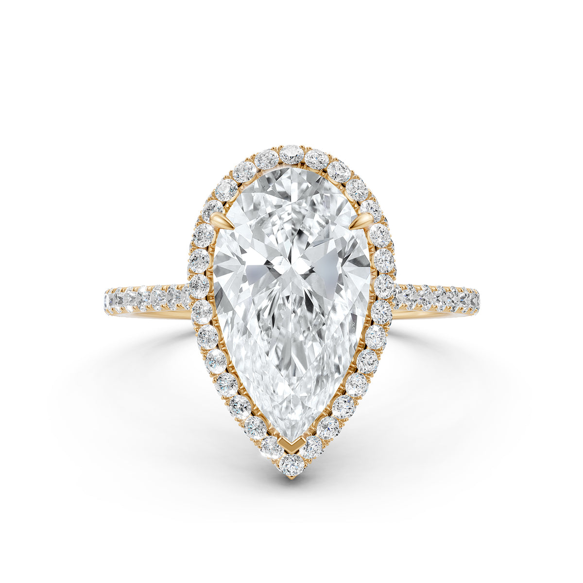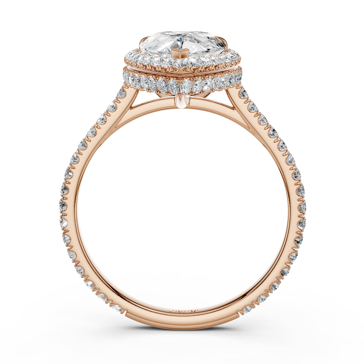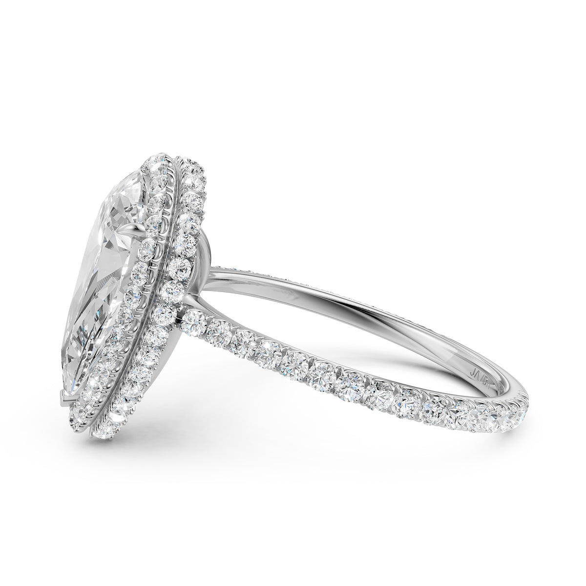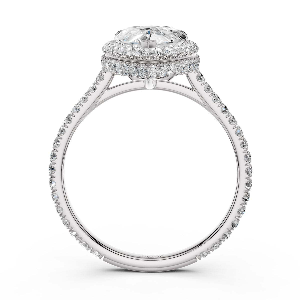 Double Halo Lab Grown Pear Diamond French Pave Set Engagement Ring - Lab Grown / 1.00 Ctw. / 14k White Gold