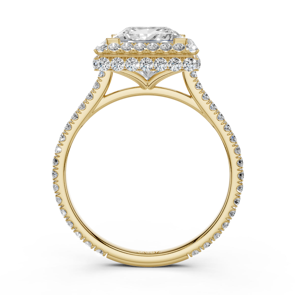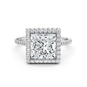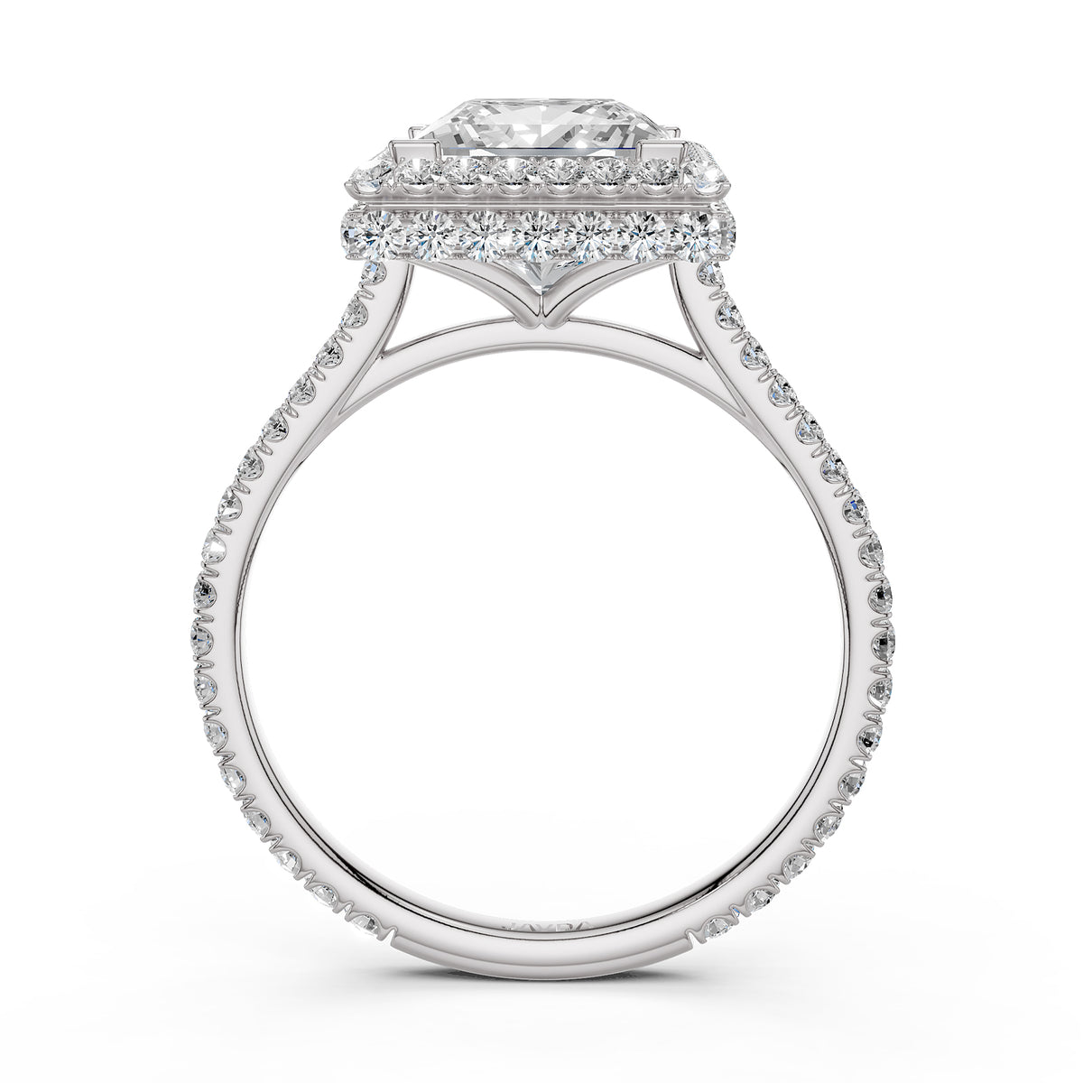 Double Halo Princess Lab Grown Diamond French Pave Set Engagement Ring - Lab Grown / 1.00 Ctw. / 14k White Gold