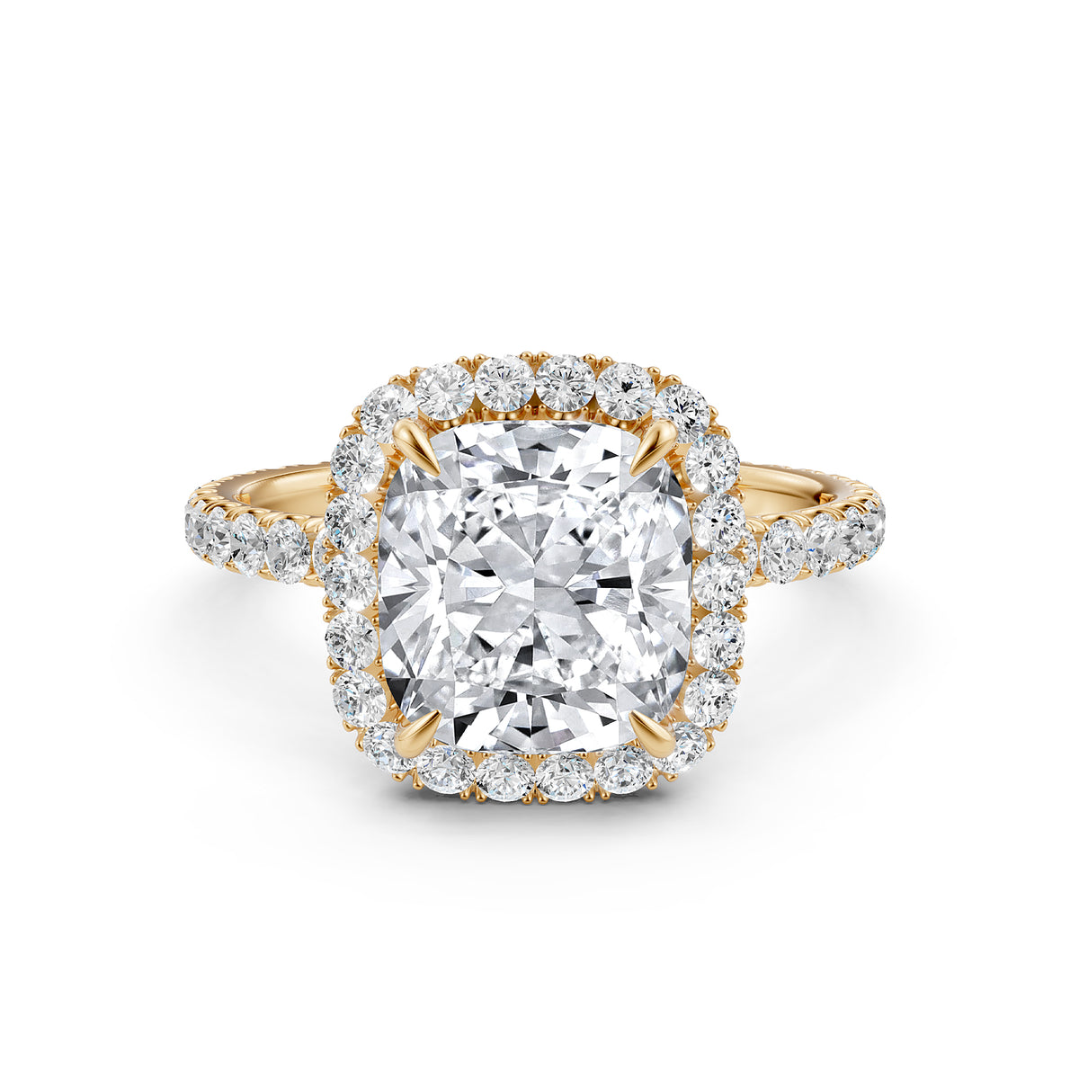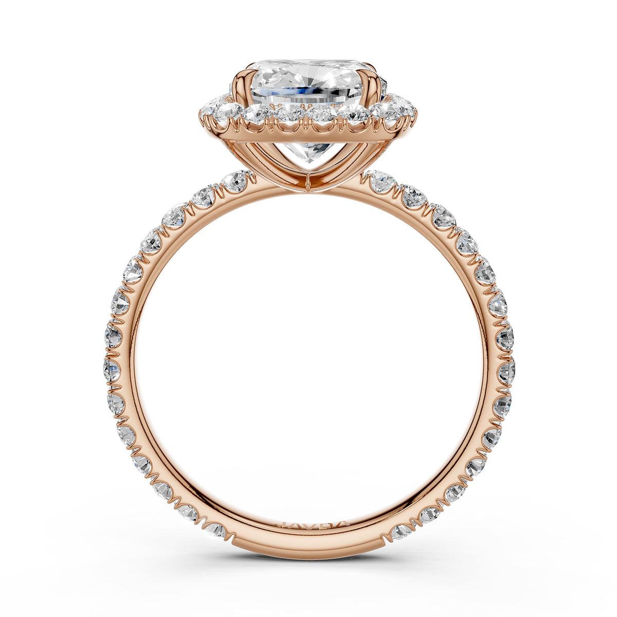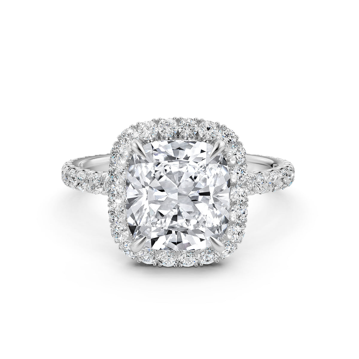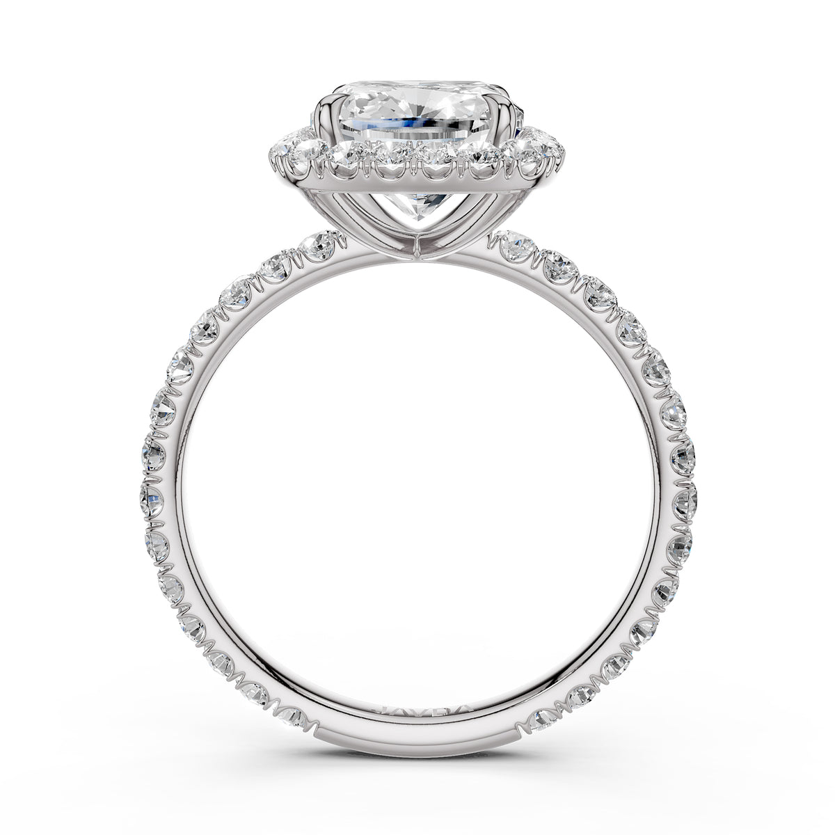 French U Cut Pave Set Halo Cushion Lab Grown Diamond Engagement Ring - Lab Grown / 1.00 Ctw. / 14k White Gold