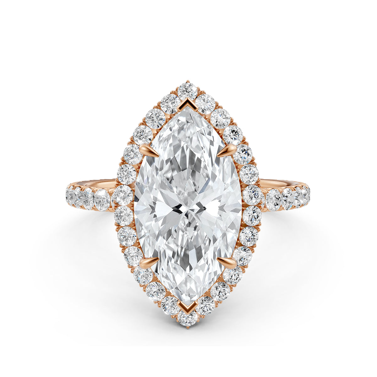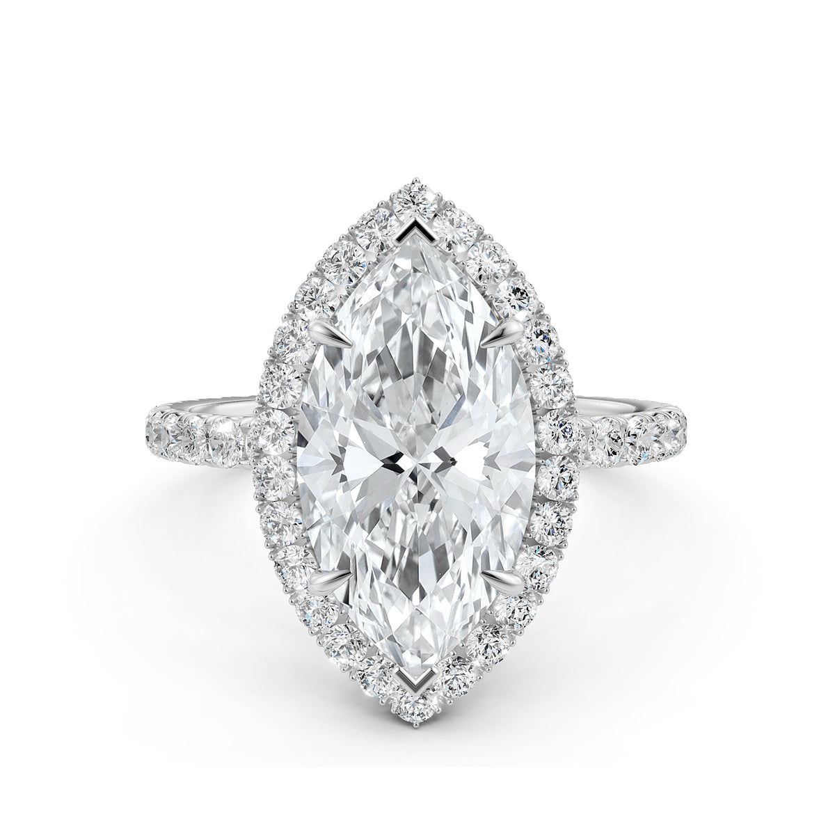 French U Cut Pave Set Marquise Halo Lab Grown Diamond Engagement Ring - Lab Grown / 1.00 Ctw. / 14k White Gold
