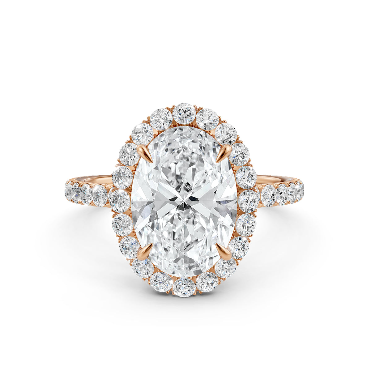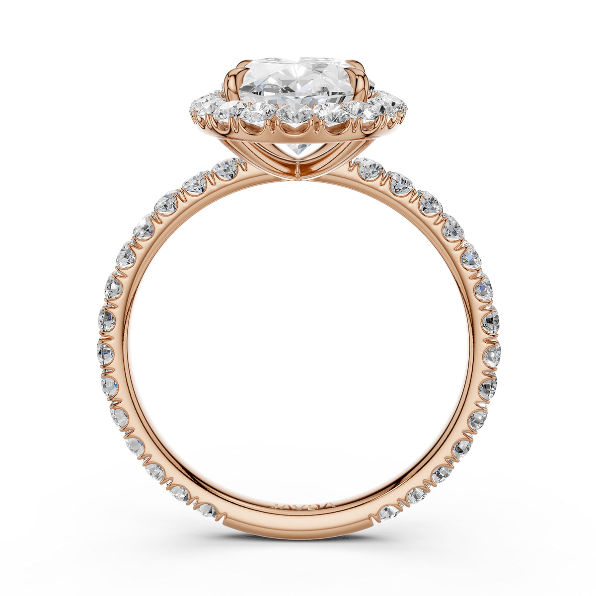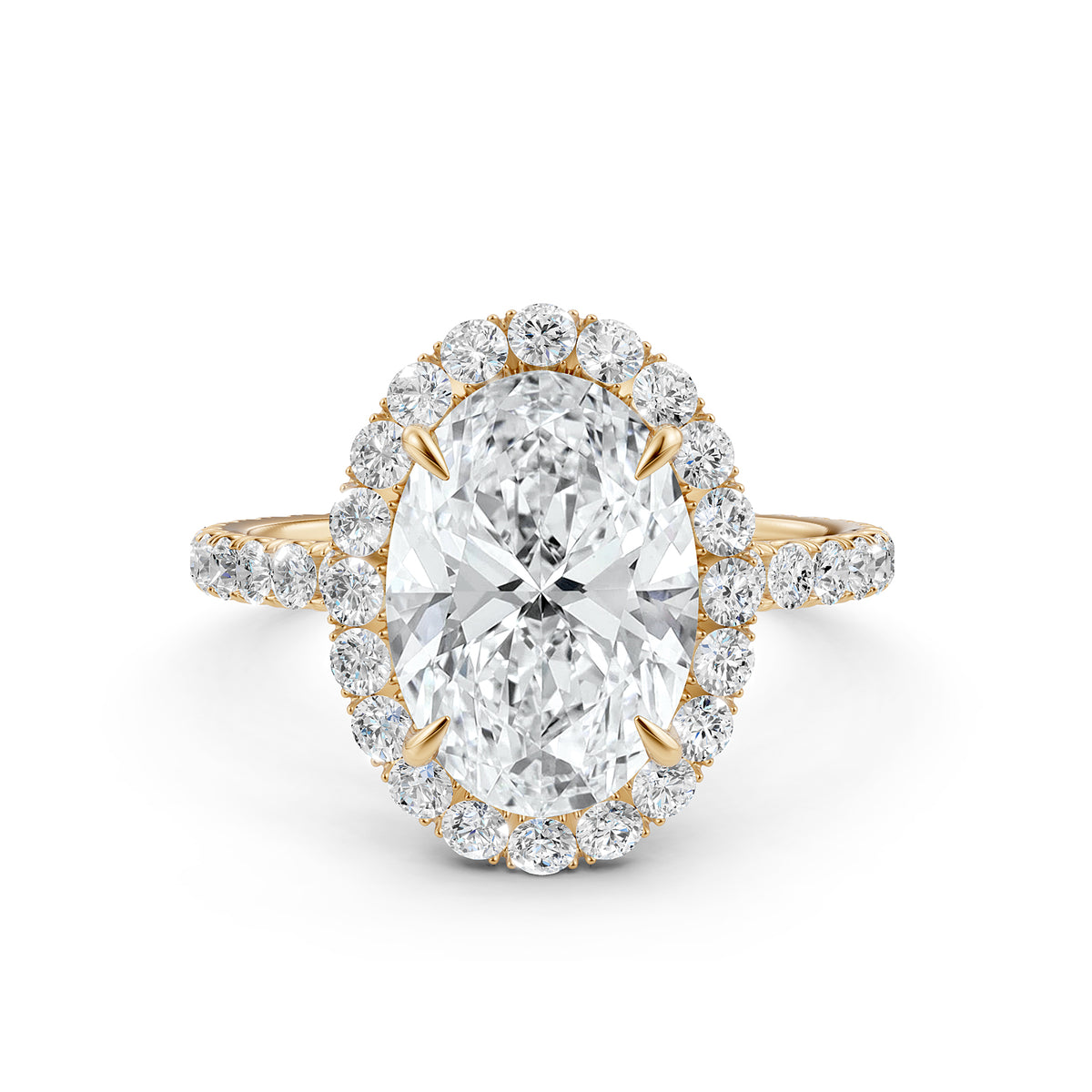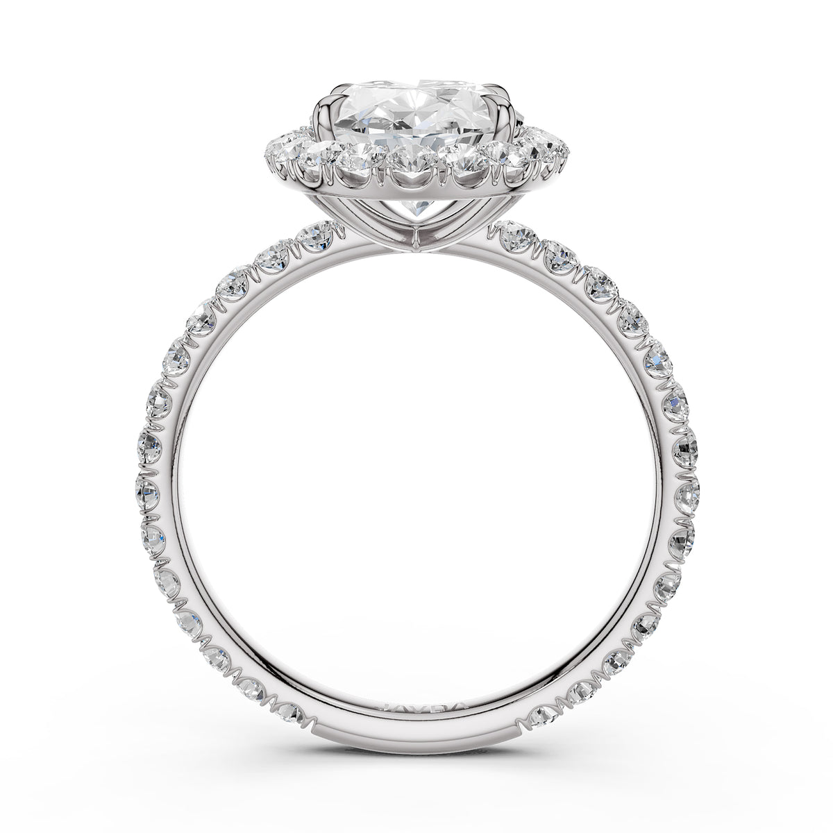 French U Cut Pave Set Oval Halo Lab Grown Diamond Engagement Ring - Lab Grown / 1.00 Ctw. / 14k White Gold
