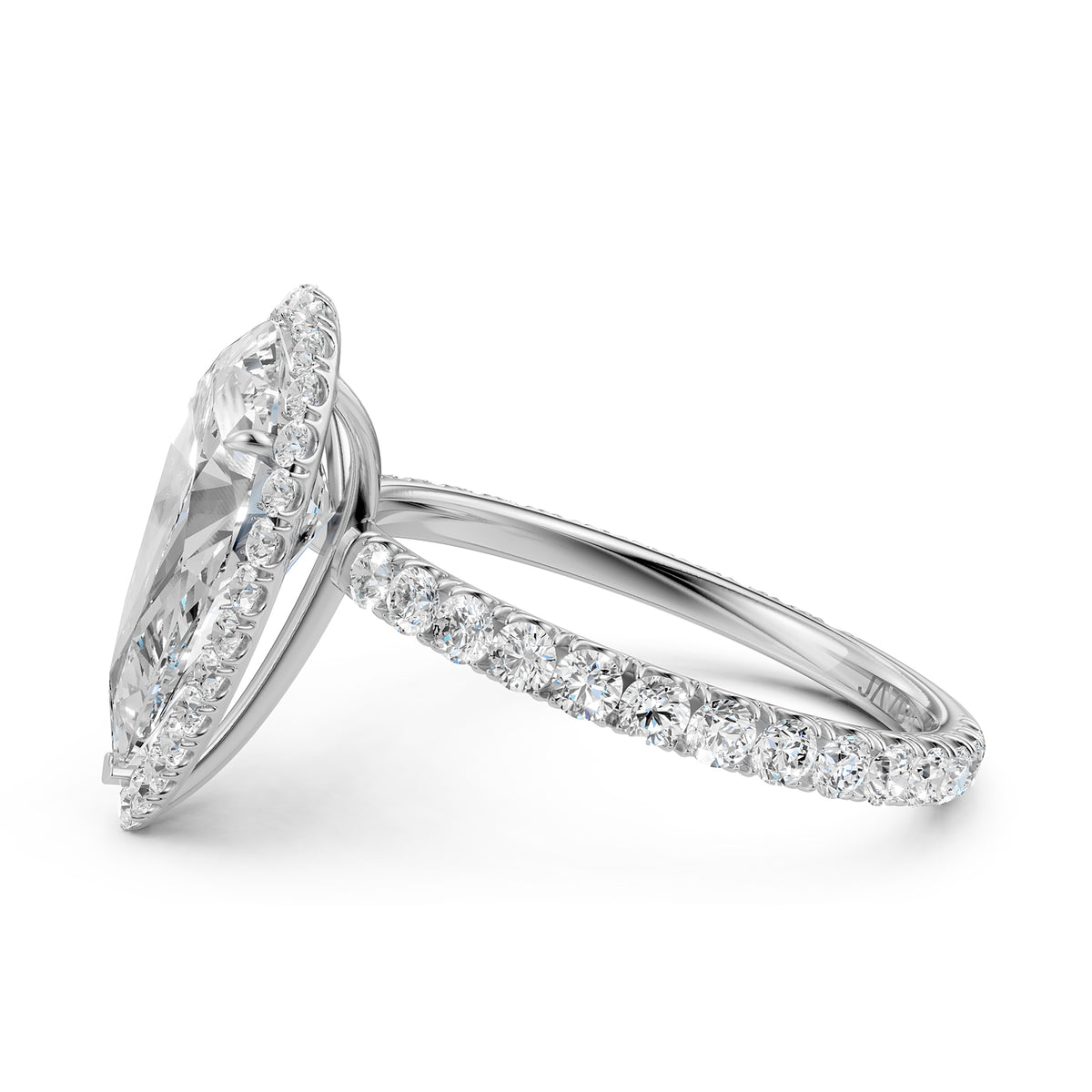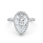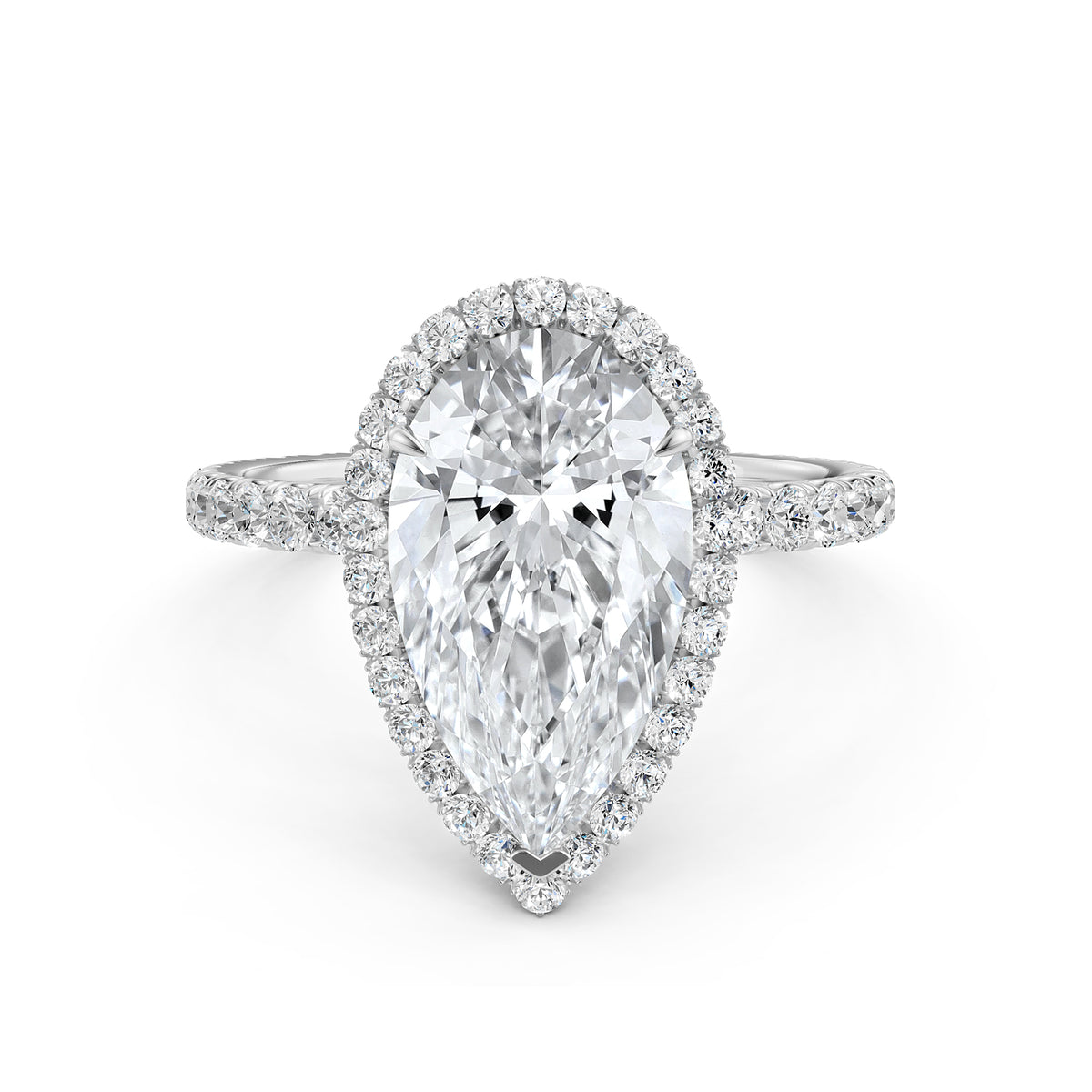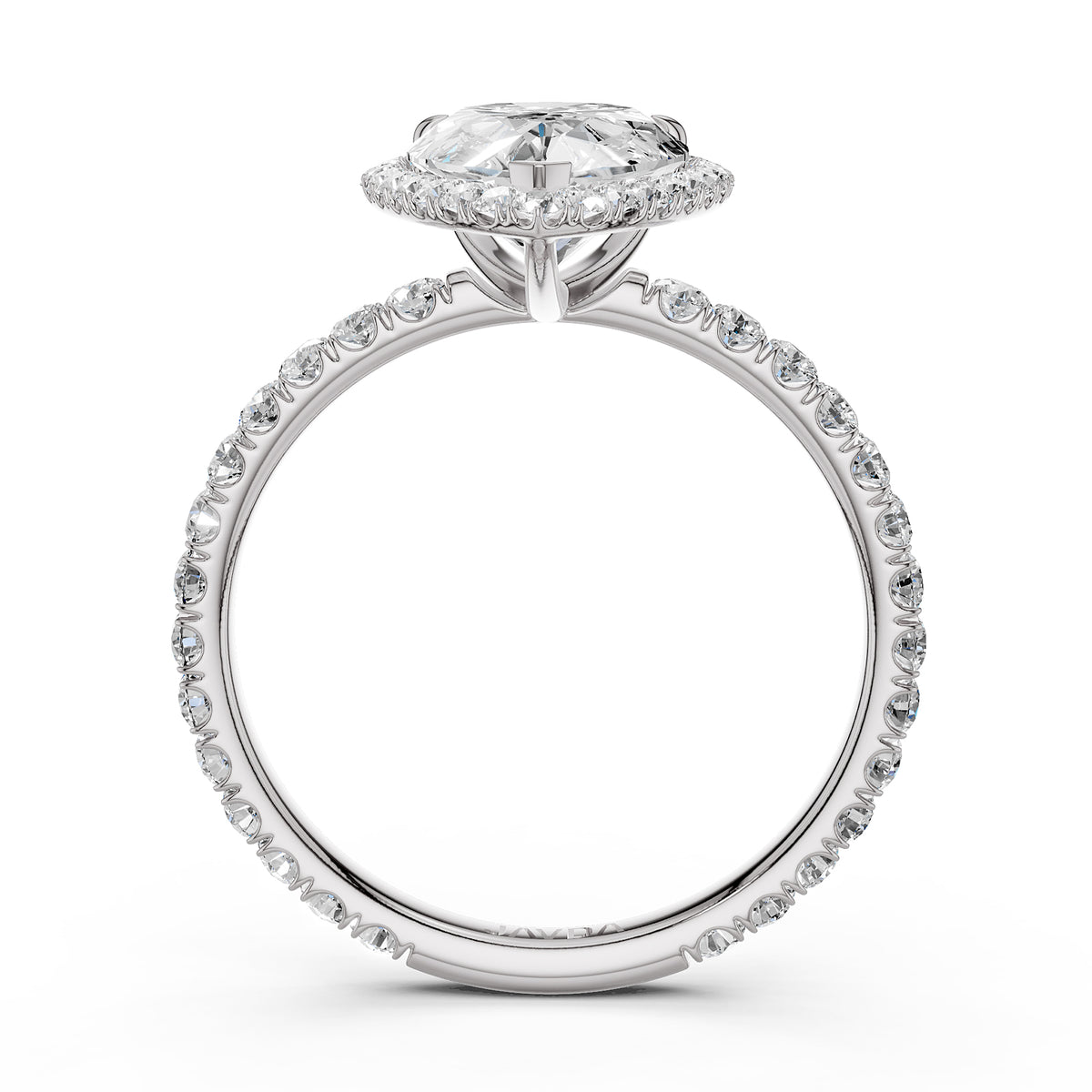 French U Cut Pave Set Pear Halo Lab Grown Diamond Engagement Ring - Lab Grown / 1.00 Ctw. / 14k White Gold