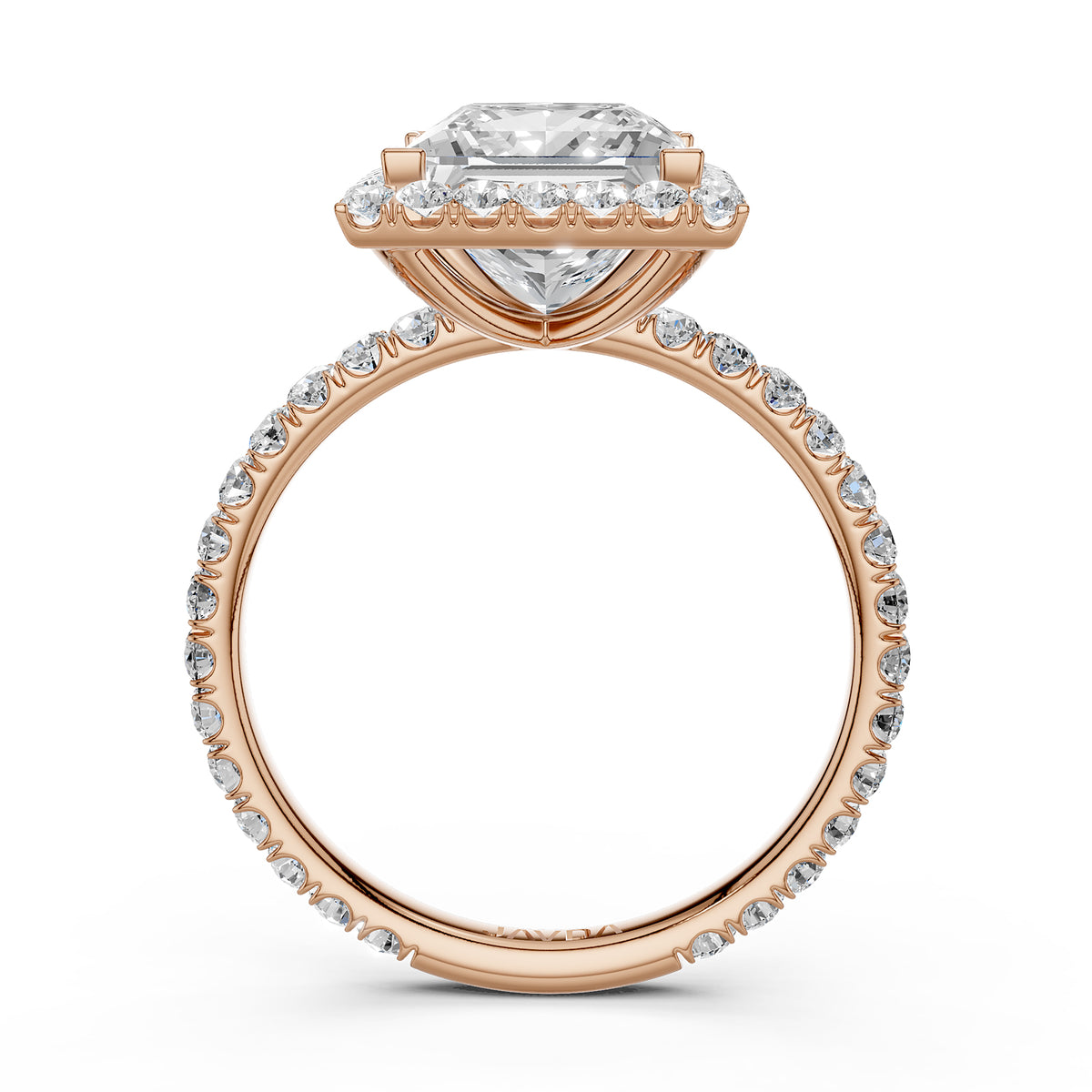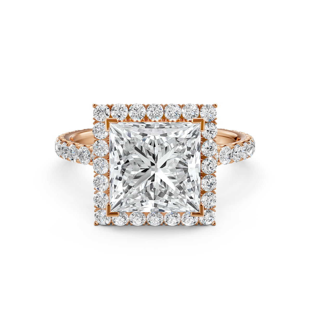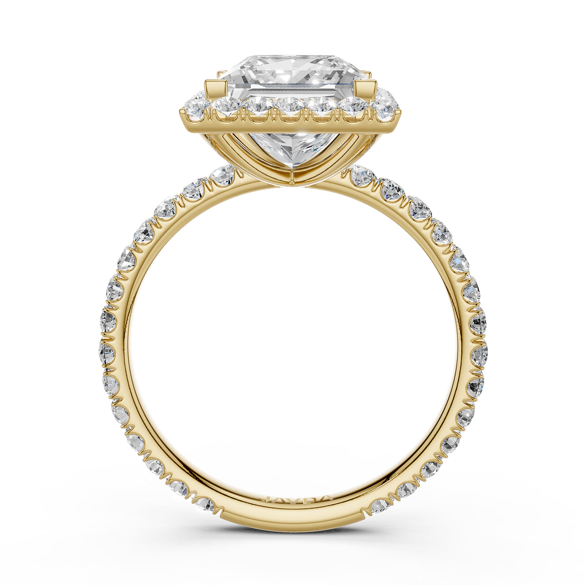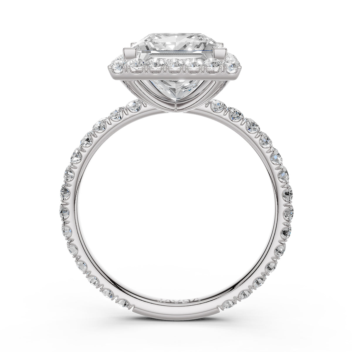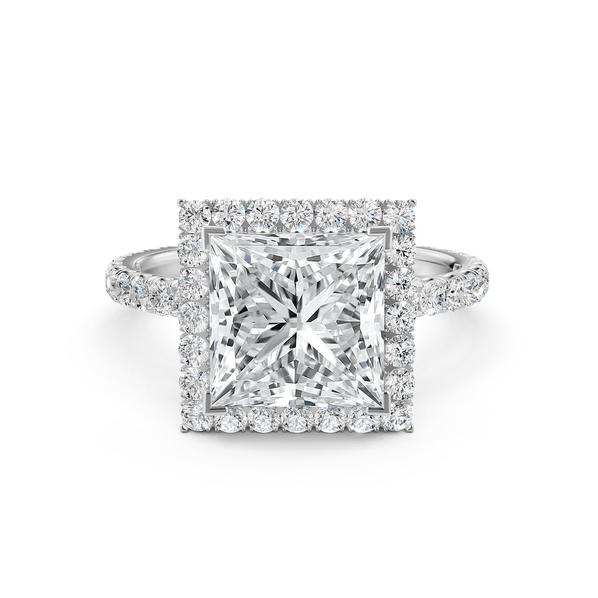French U Cut Pave Set Princess Halo Lab Grown Diamond Engagement Ring - Lab Grown / 1.00 Ctw. / 14k White Gold