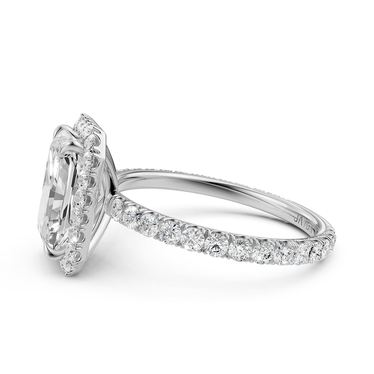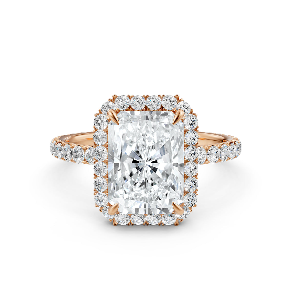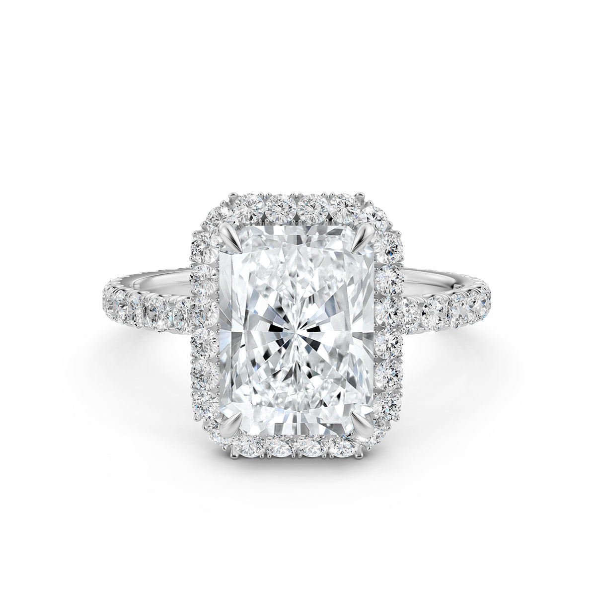 French U Cut Pave Set Radiant Halo Lab Grown Diamond Engagement Ring - Lab Grown / 1.00 Ctw. / 14k White Gold