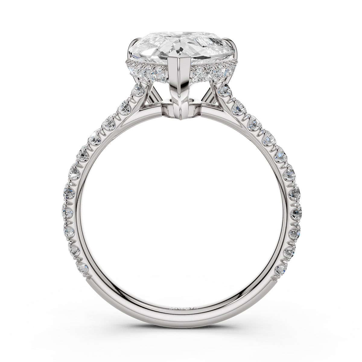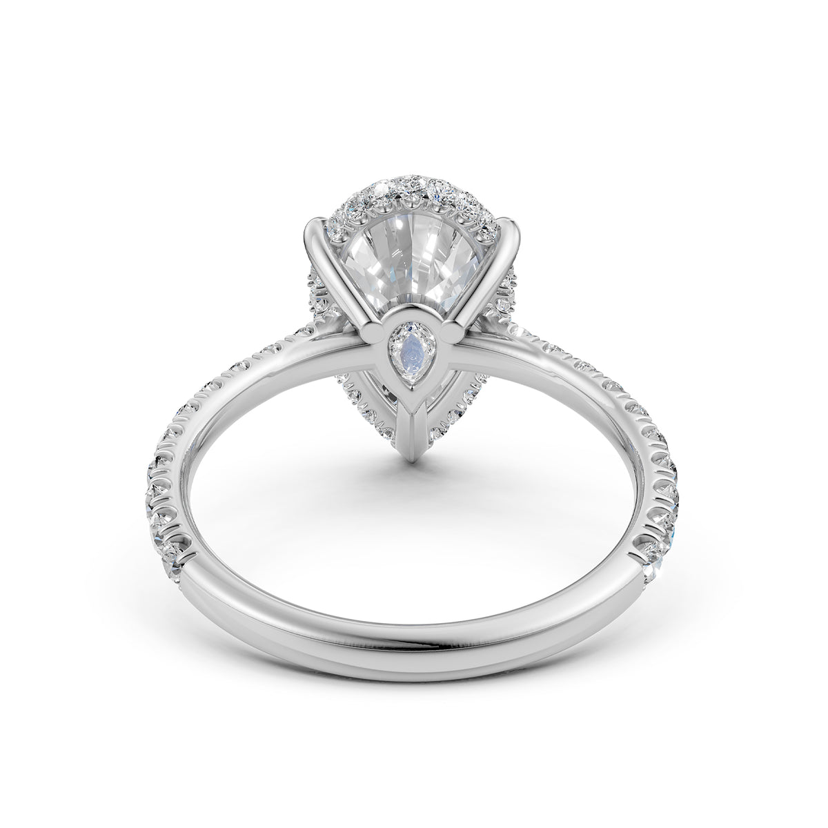 French U Pave Hidden Halo Lab Grown Diamond Pear Engagement Ring - Lab Grown / 1.00 Ctw. / 14k White Gold