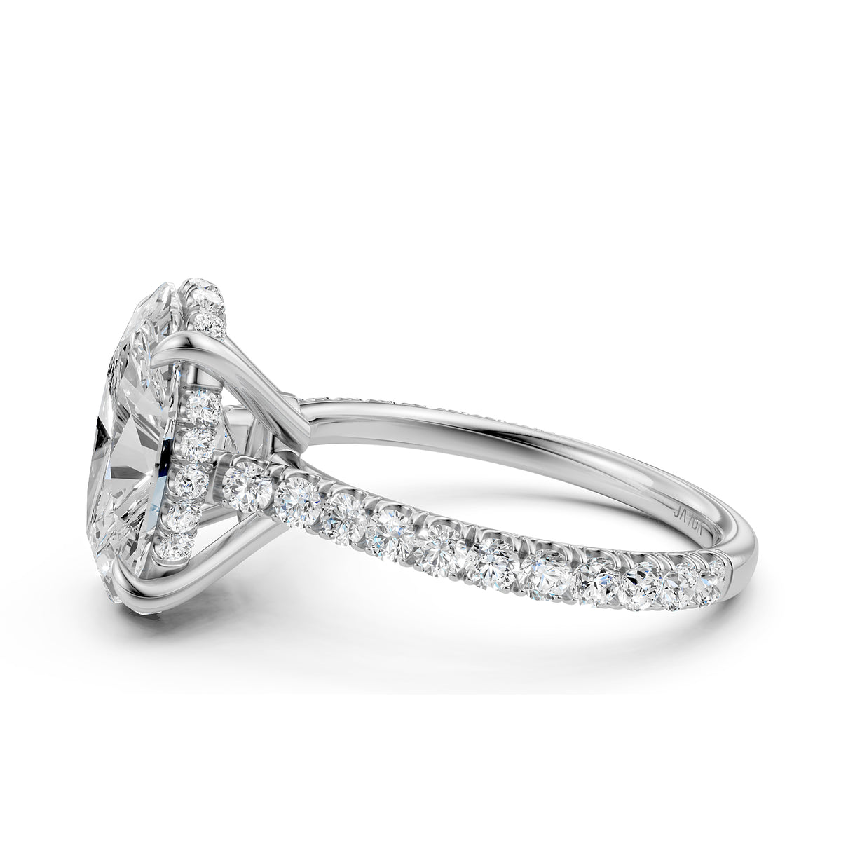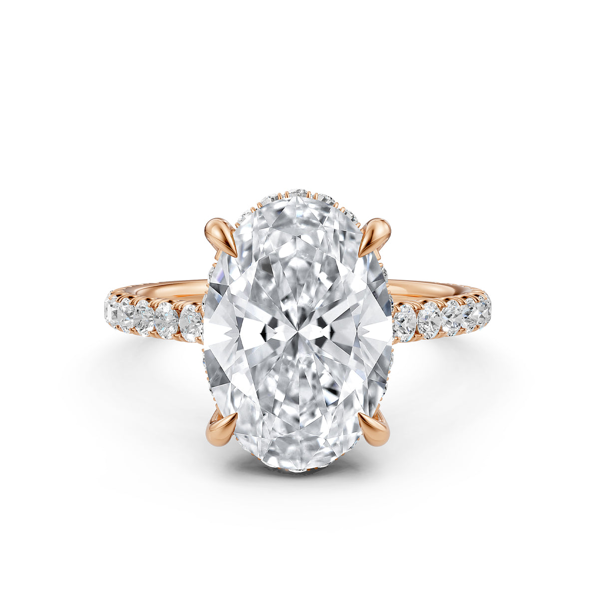 French U Pave Hidden Halo Lab Grown Diamond Oval Engagement Ring - Lab Grown / 1.00 Ctw. / 14k White Gold