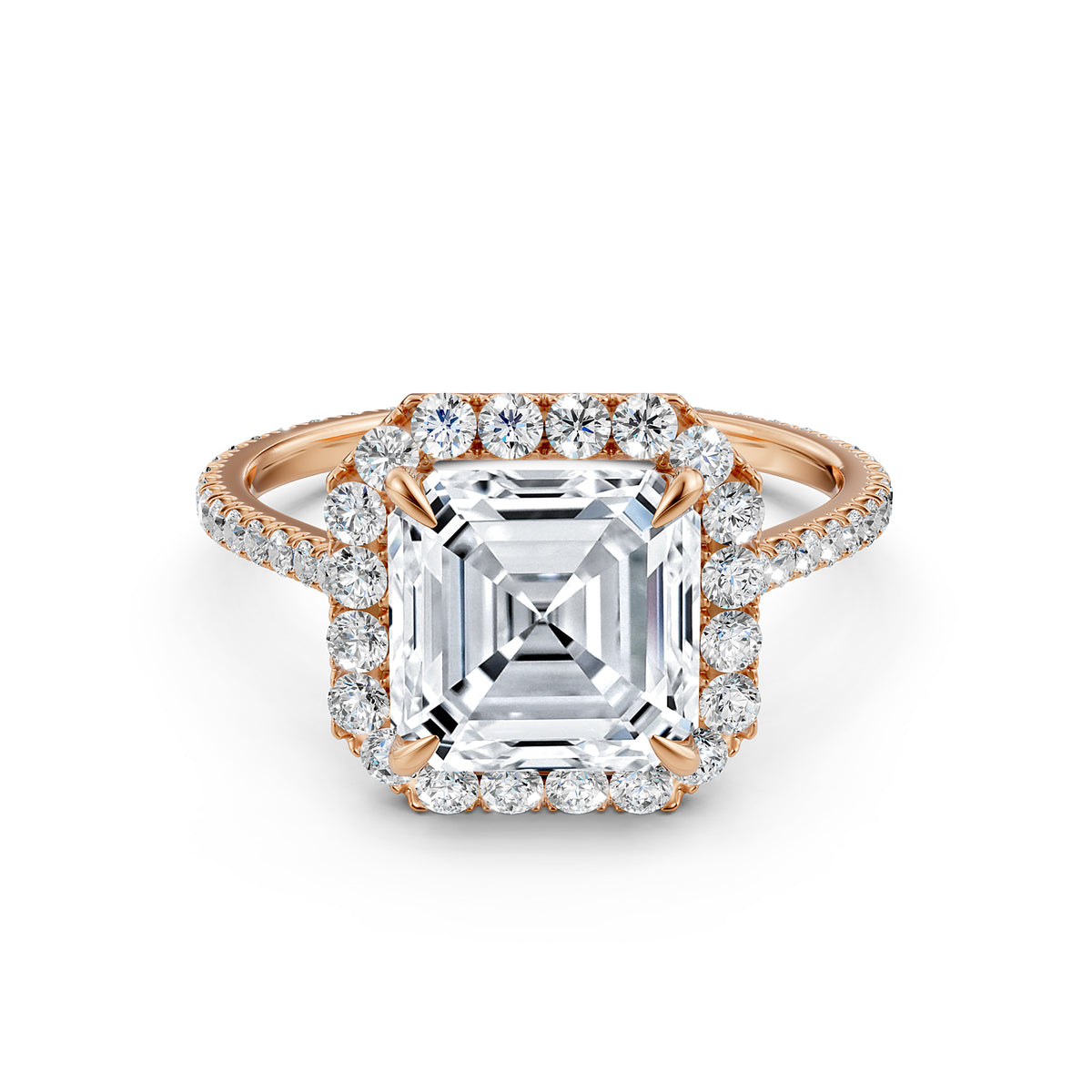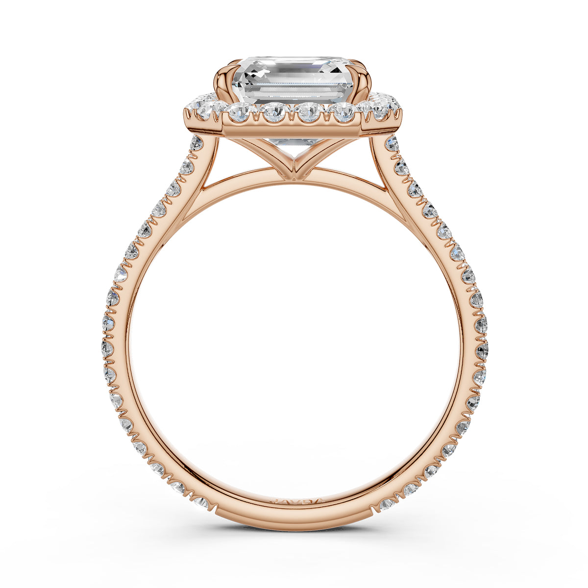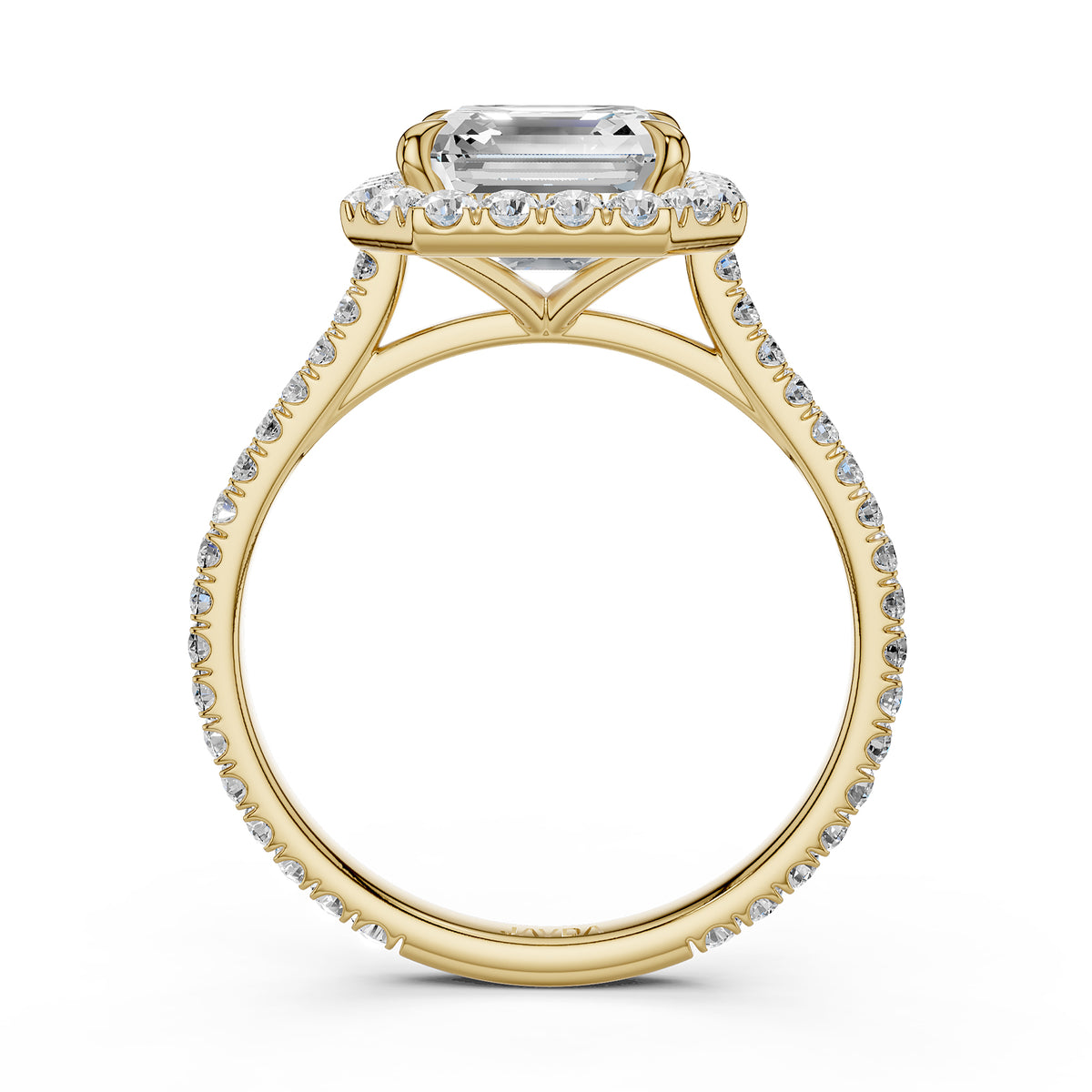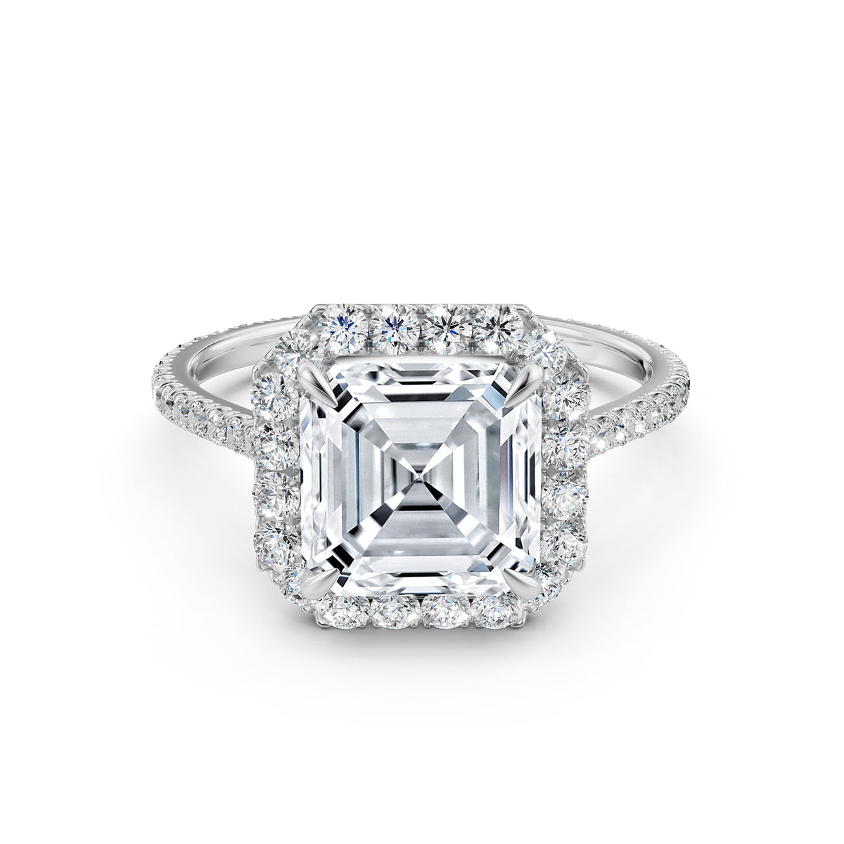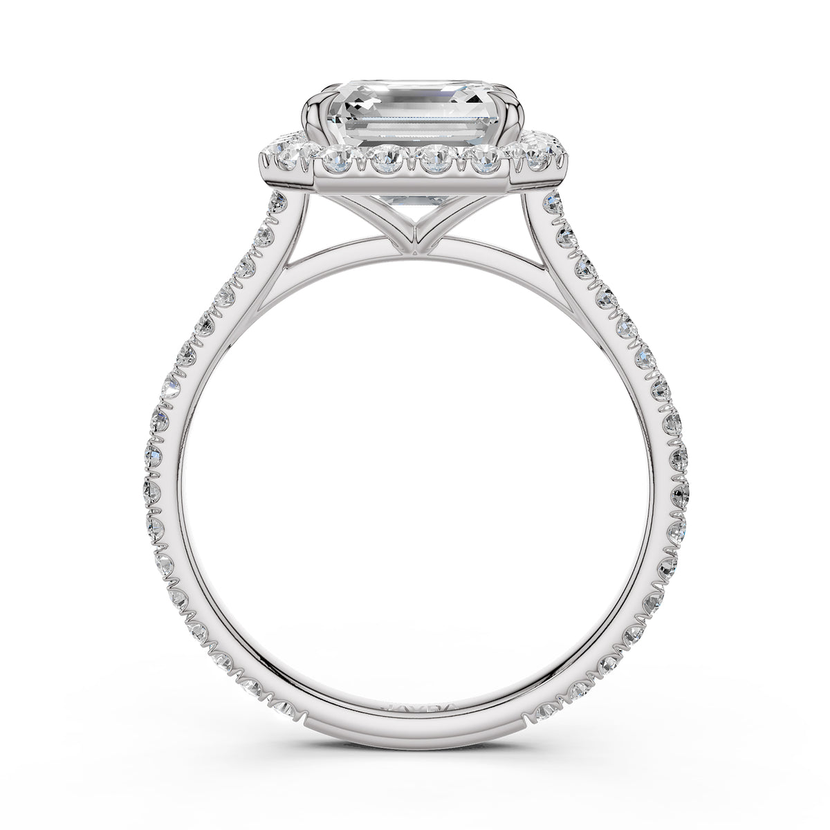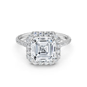 French U Pave Set Halo Lab Grown Diamond Asscher Engagement Ring - Lab Grown / 1.00 Ctw. / 14k White Gold