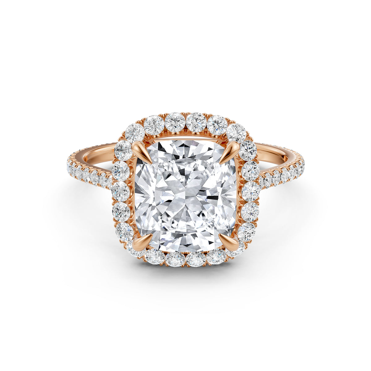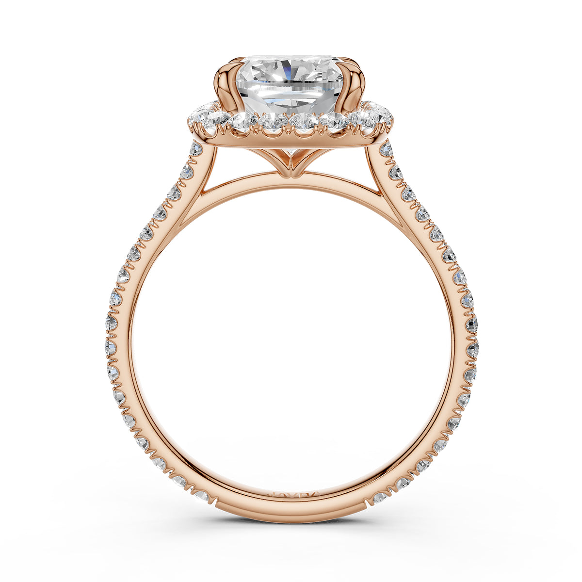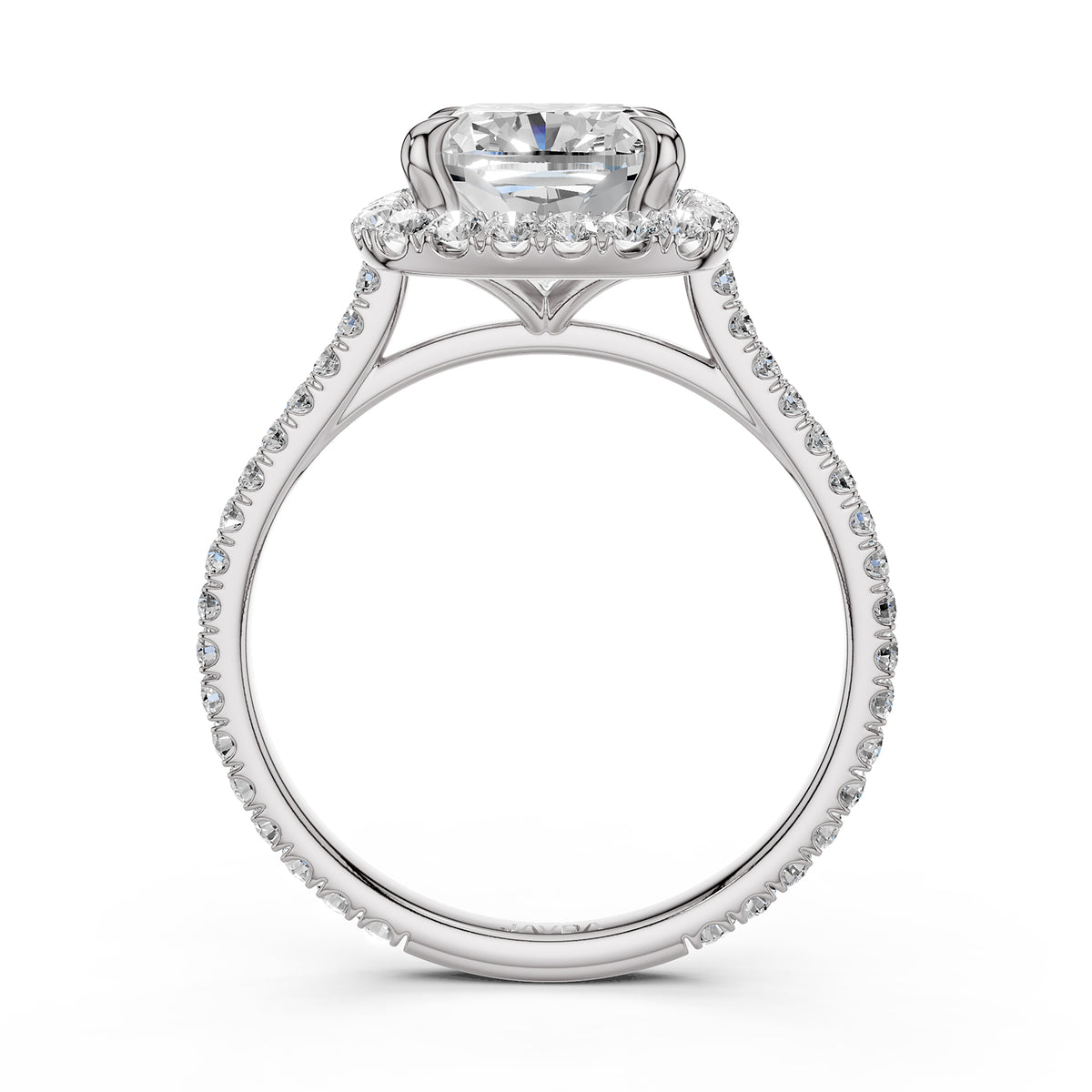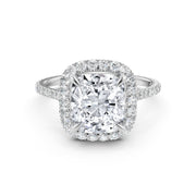 French U Pave Set Halo Lab Grown Diamond Cushion Engagement Ring - Lab Grown / 1.00 Ctw. / 14k White Gold