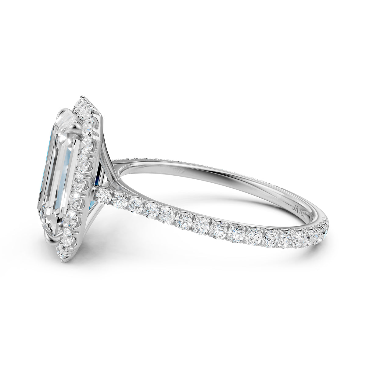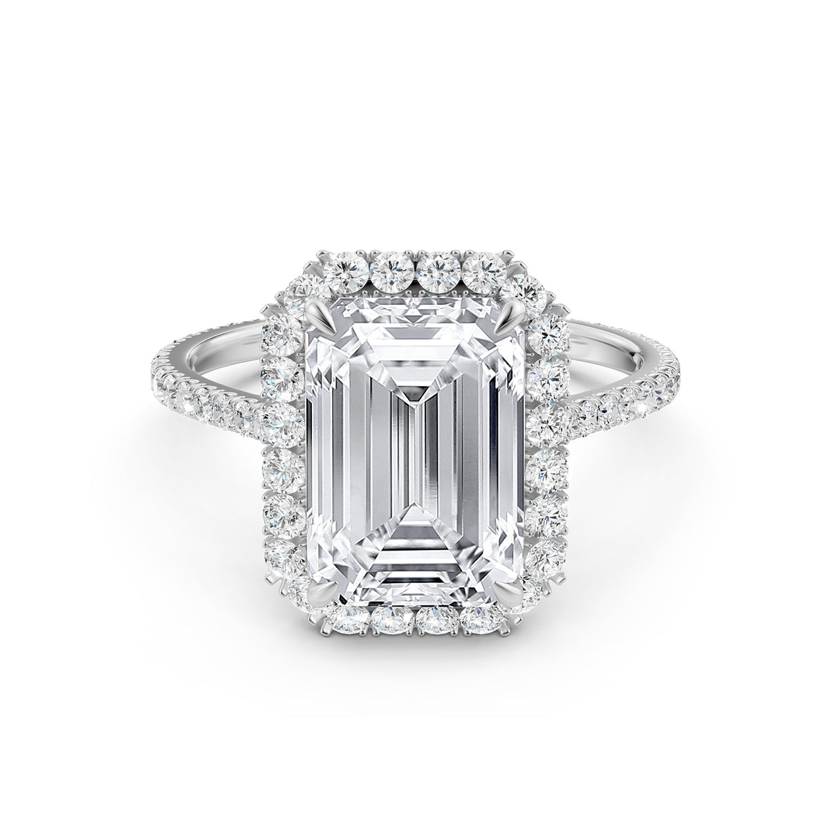 French U Pave Set Halo Lab Grown Diamond Emerald Engagement Ring