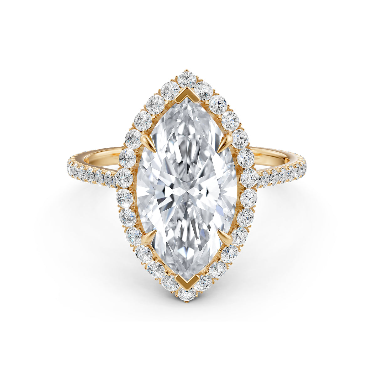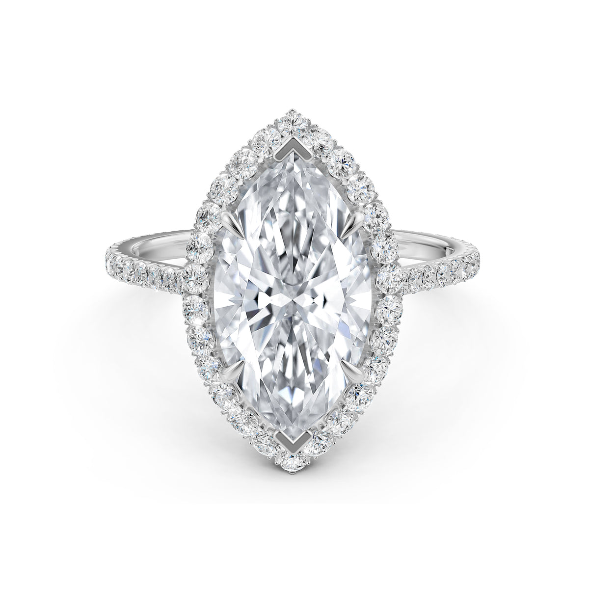French U Pave Set Halo Lab Grown Diamond Marquise Engagement Ring - Lab Grown / 1.00 Ctw. / 14k White Gold