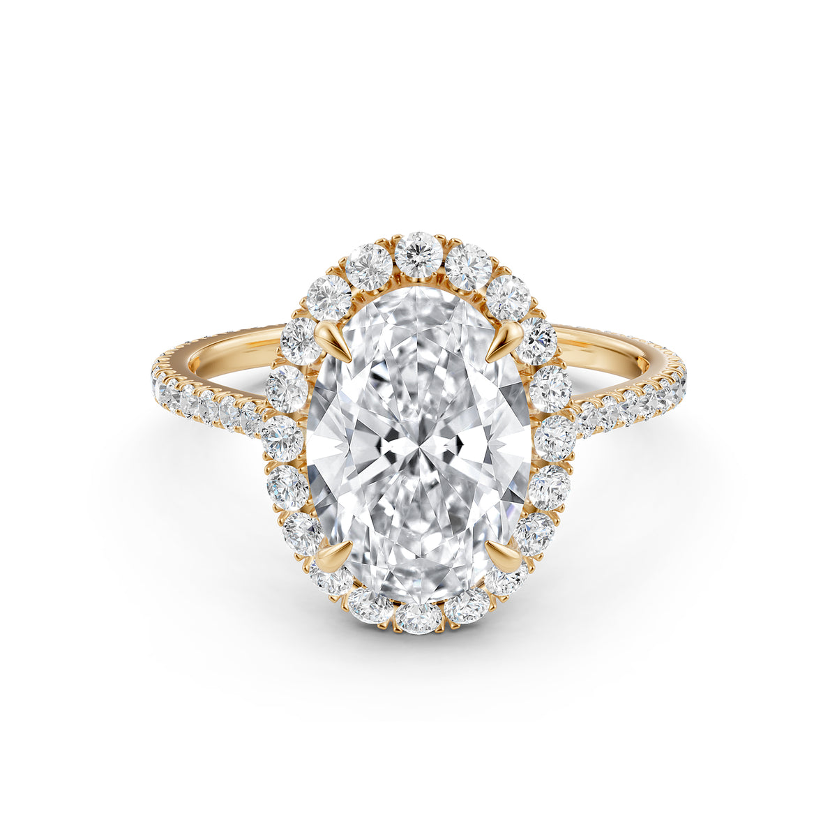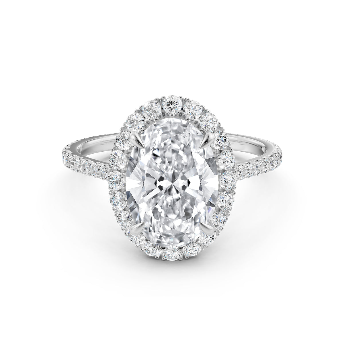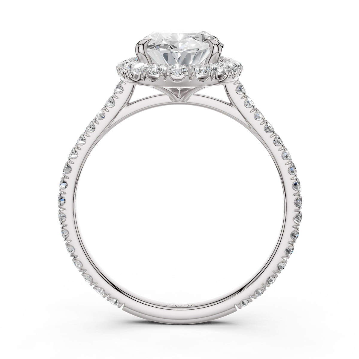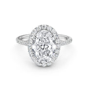 French U Pave Set Halo Lab Grown Diamond Oval Engagement Ring - Lab Grown / 1.00 Ctw. / 14k White Gold