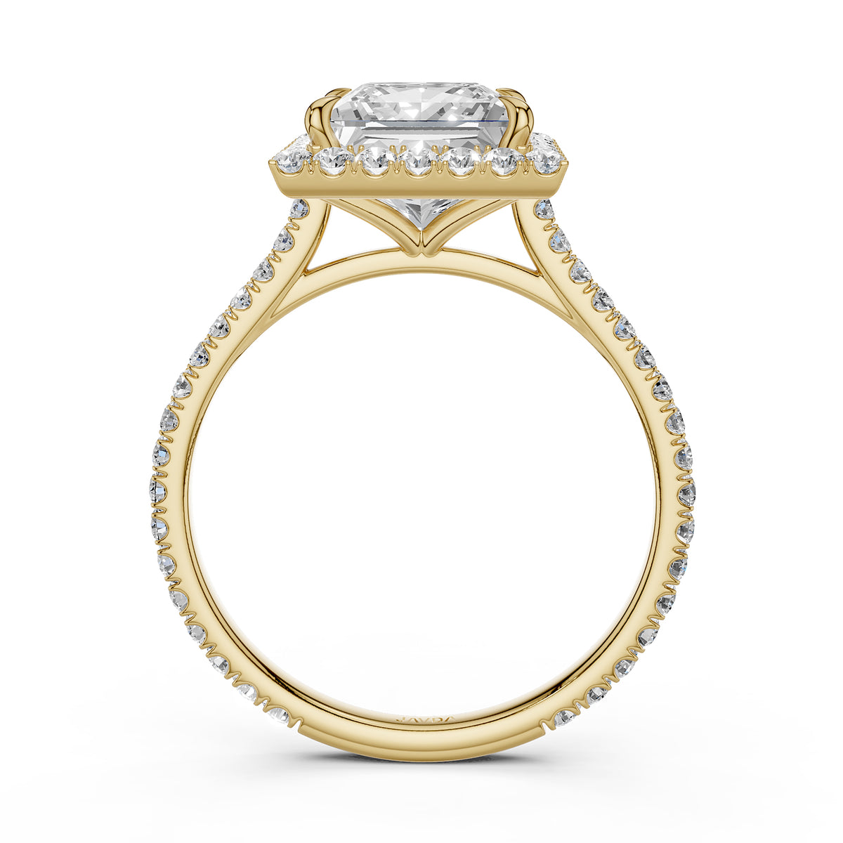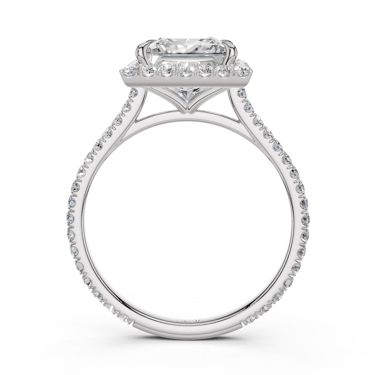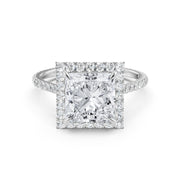 French U Pave Set Halo Diamond Princess Engagement Ring 14k White Gold. - Lab Grown / 1.00 Ctw. / 14k White Gold