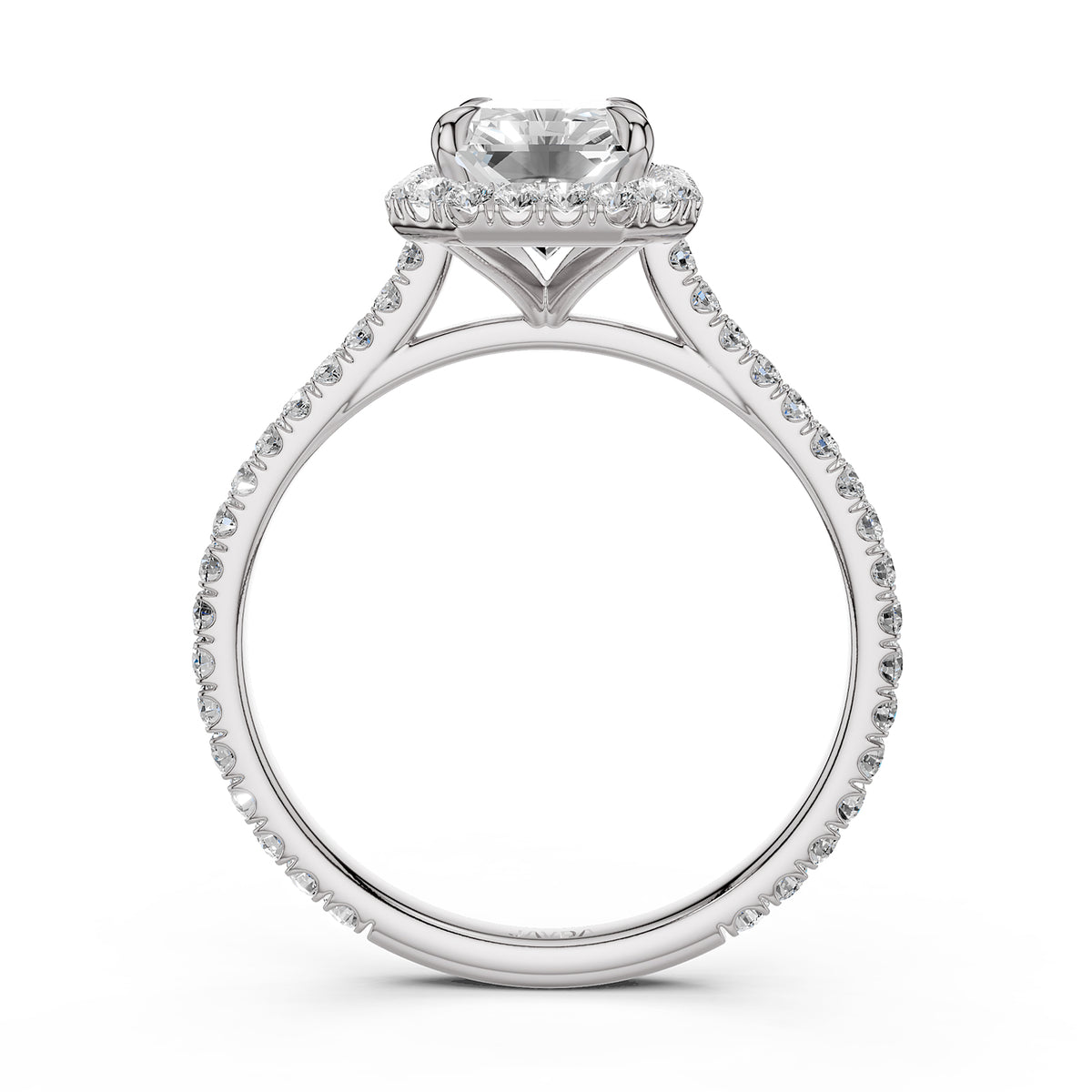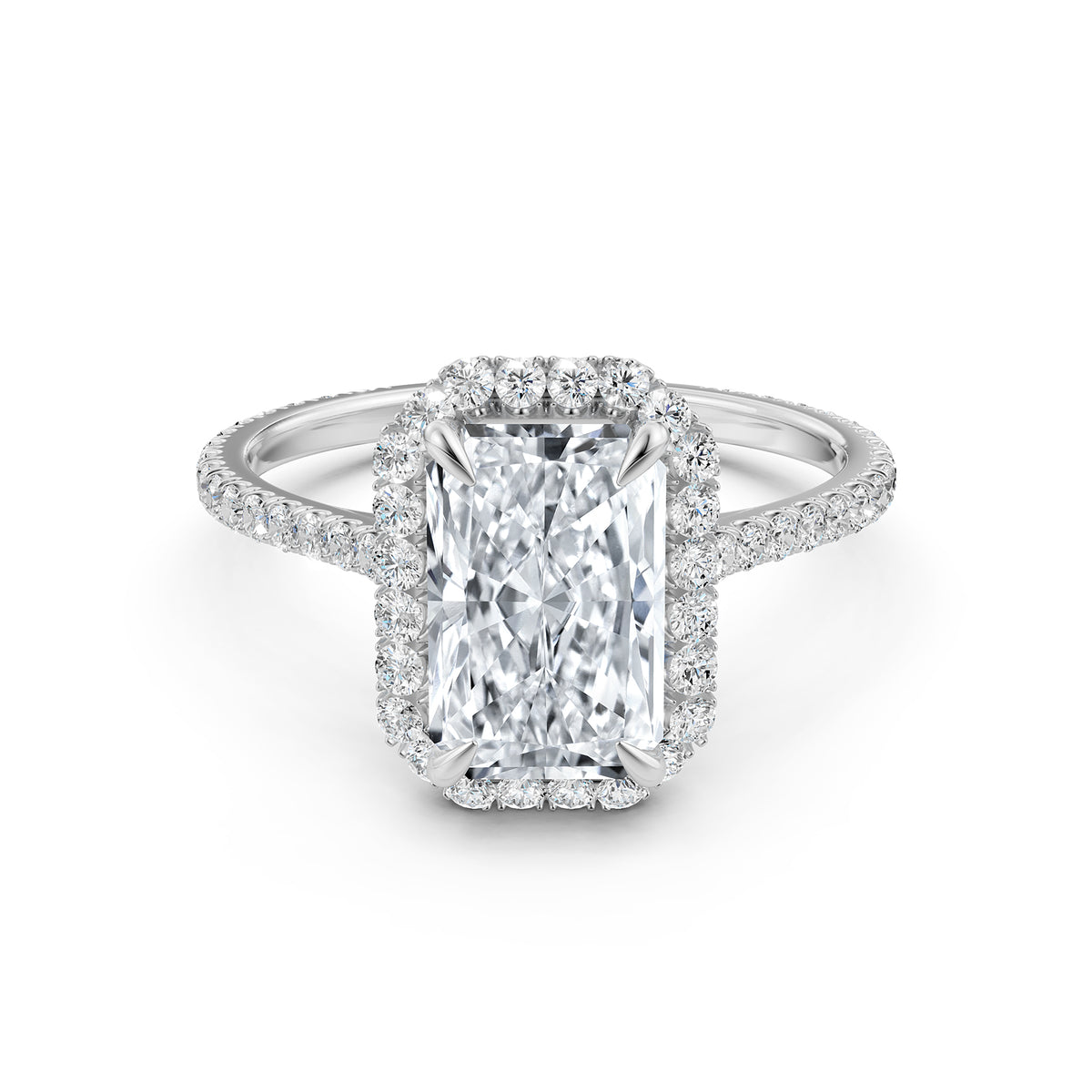 French U Pave Set Halo Diamond Radiant Engagement Ring 14k White Gold. - Lab Grown / 1.00 Ctw. / 14k White Gold