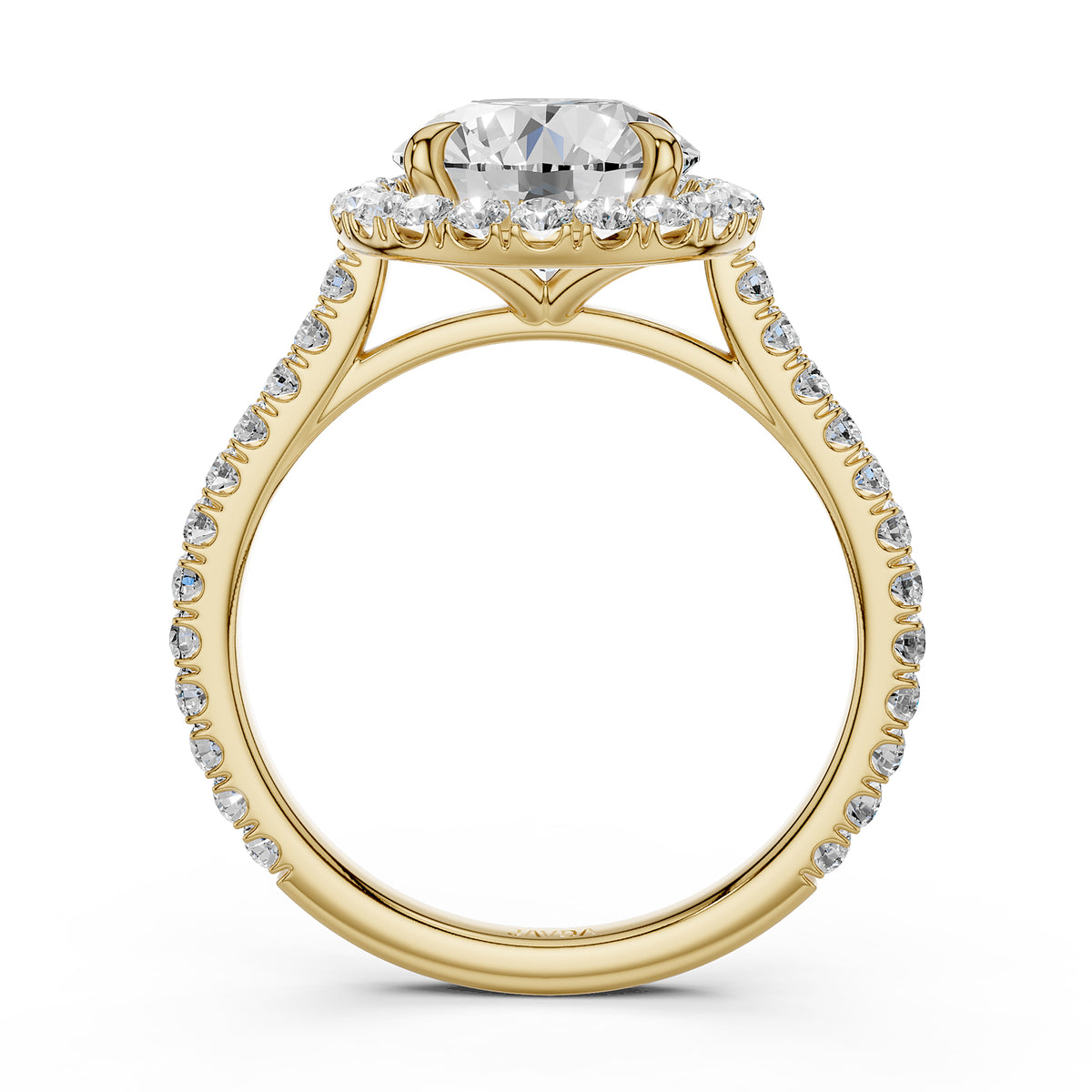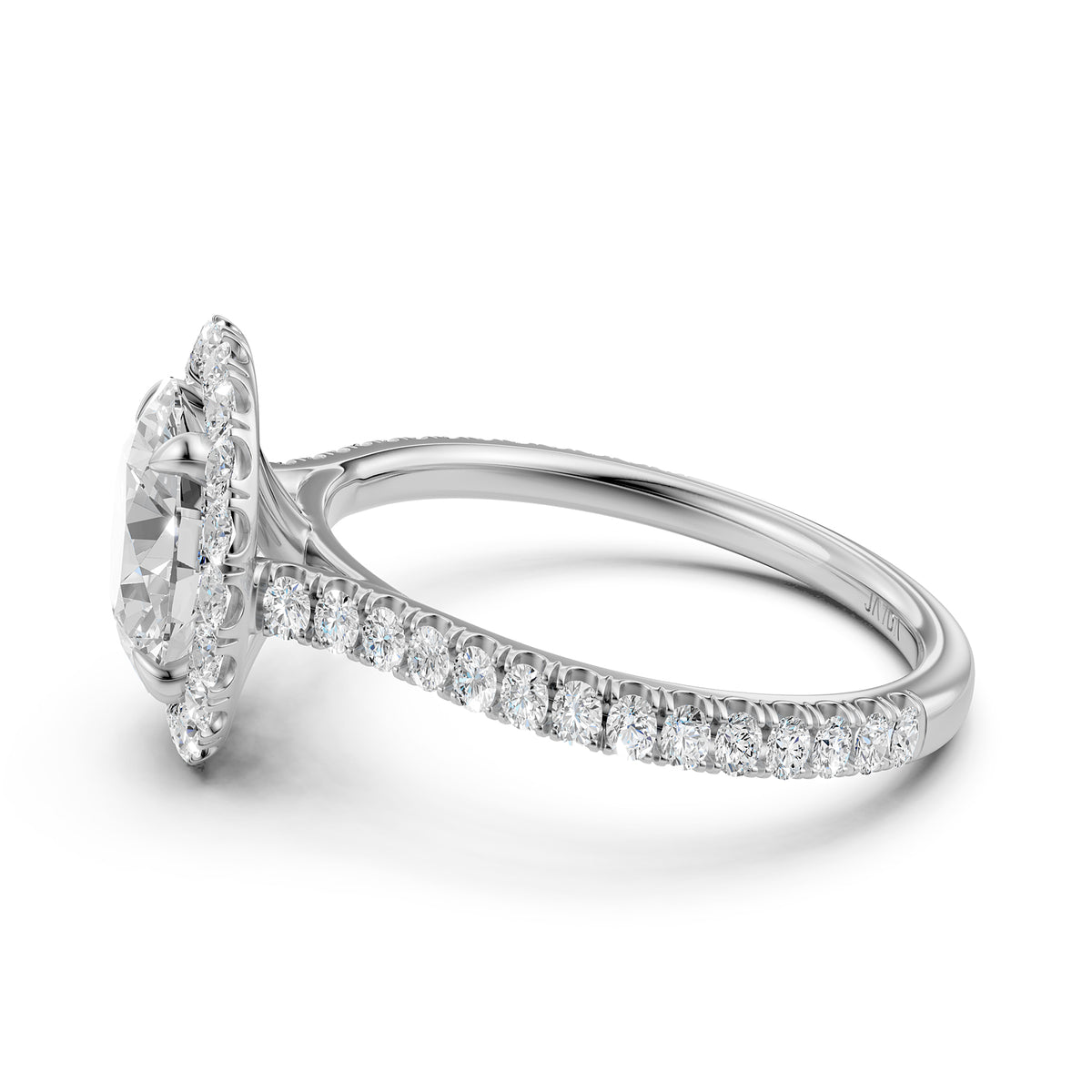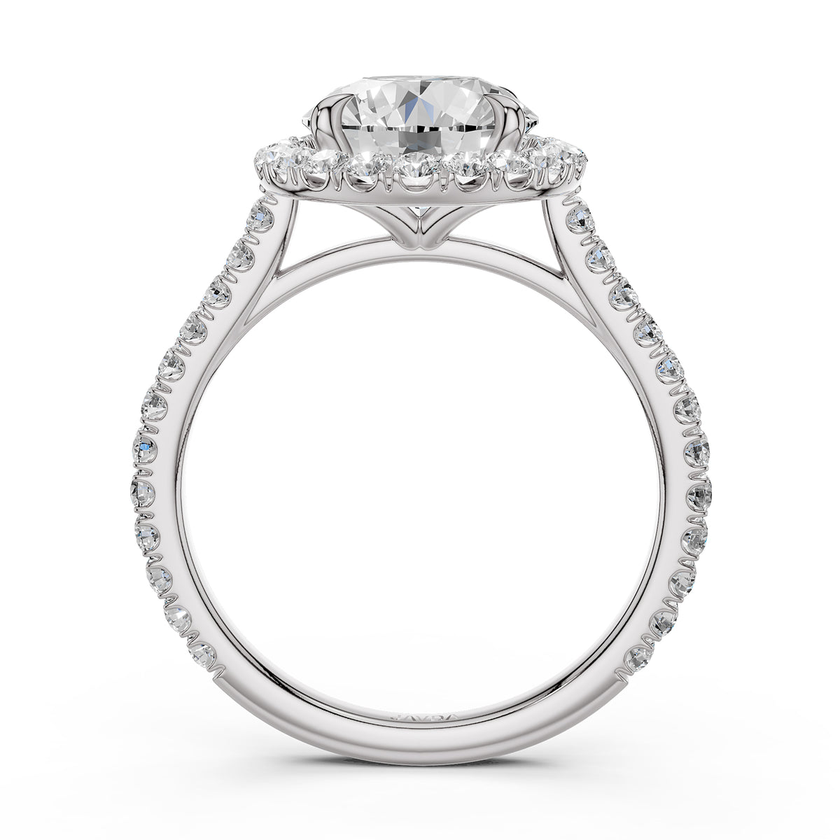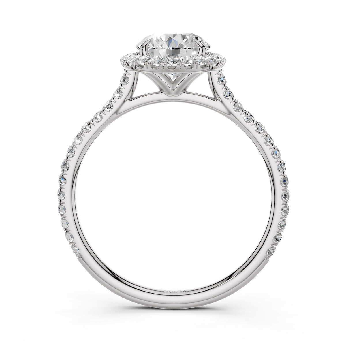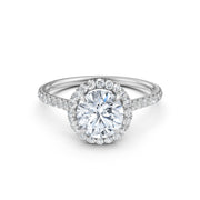 French U Pave Set Halo Lab Grown Diamond Round Engagement Ring - Lab Grown / 1.00 Ctw. / 14k White Gold