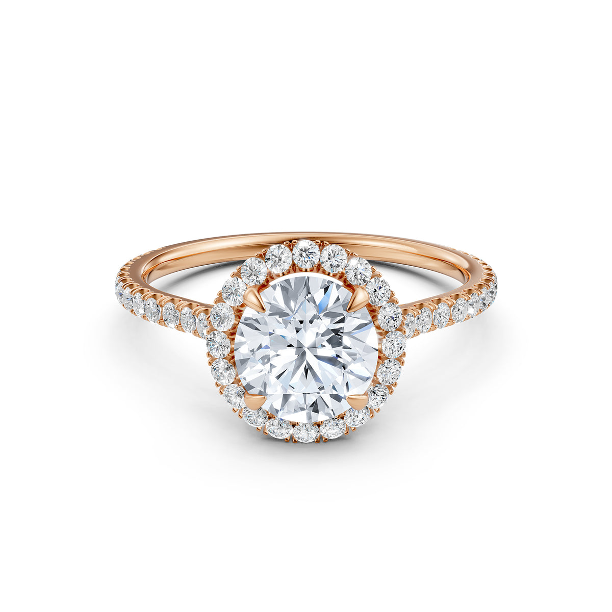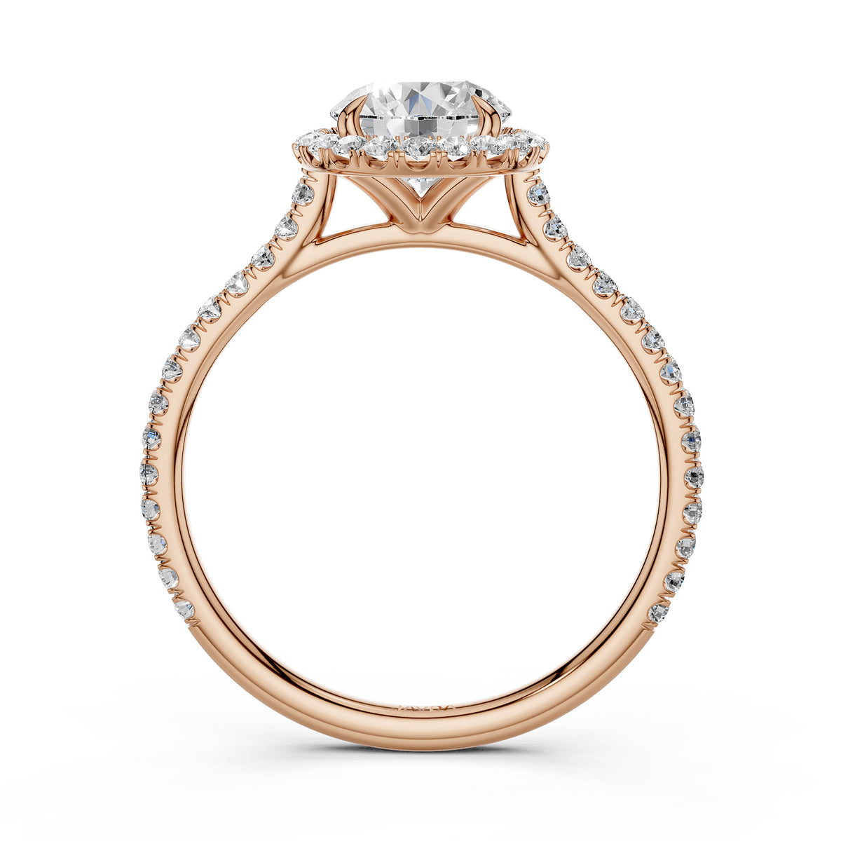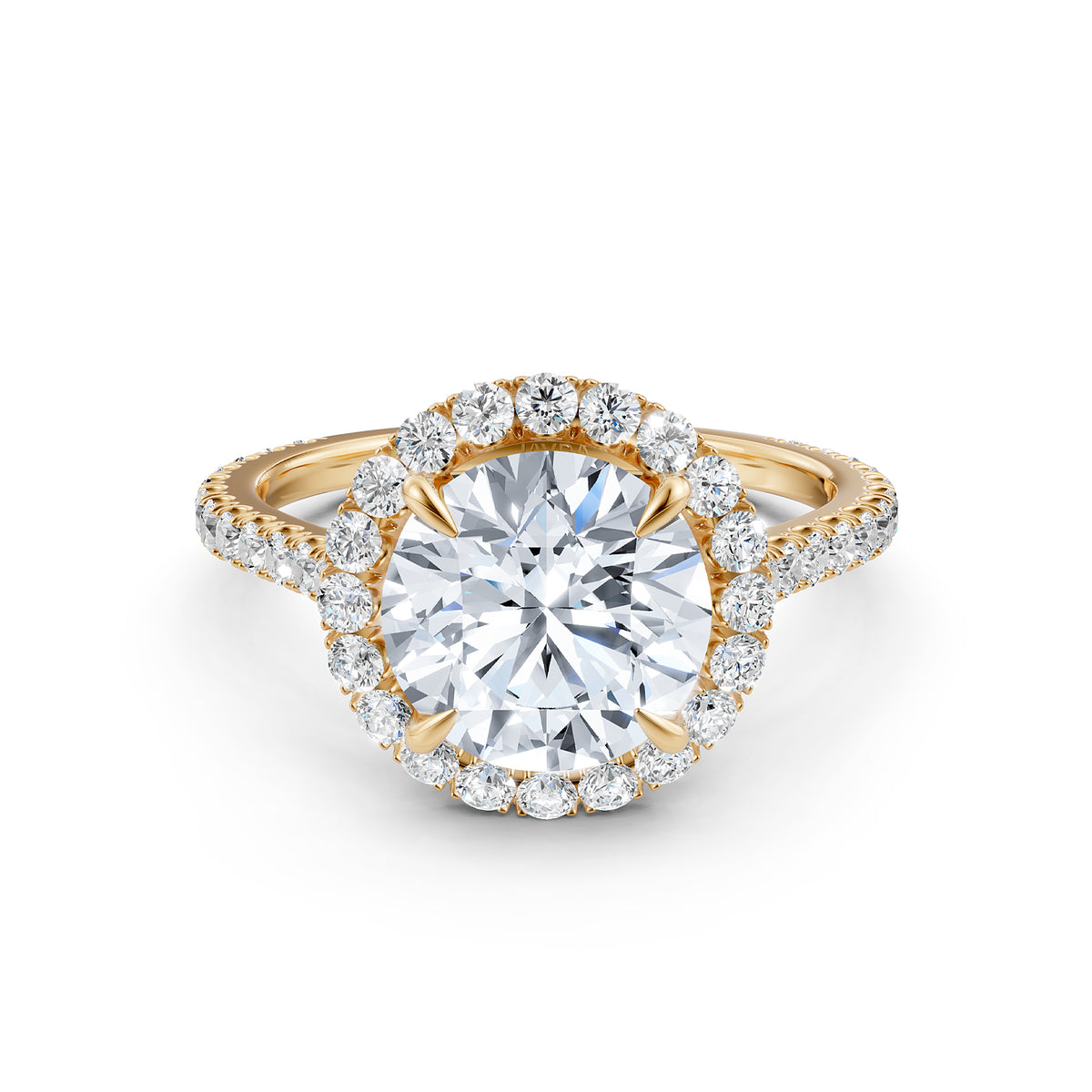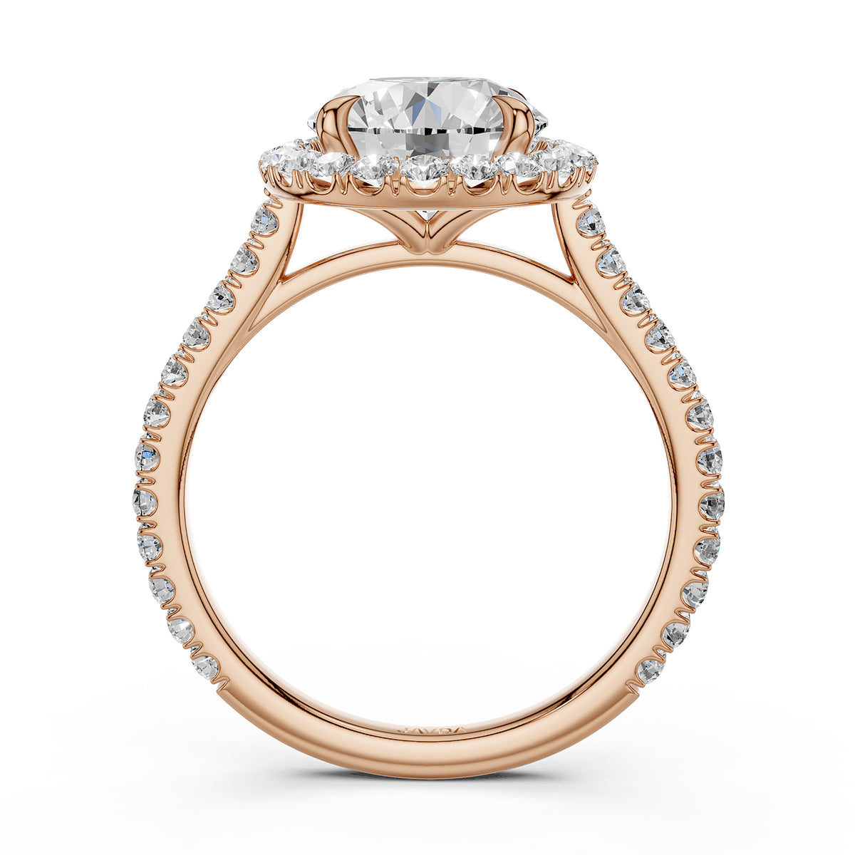 French U Pave Set Halo Lab Grown Diamond Round Engagement Ring - Lab Grown / 1.00 Ctw. / 14k White Gold