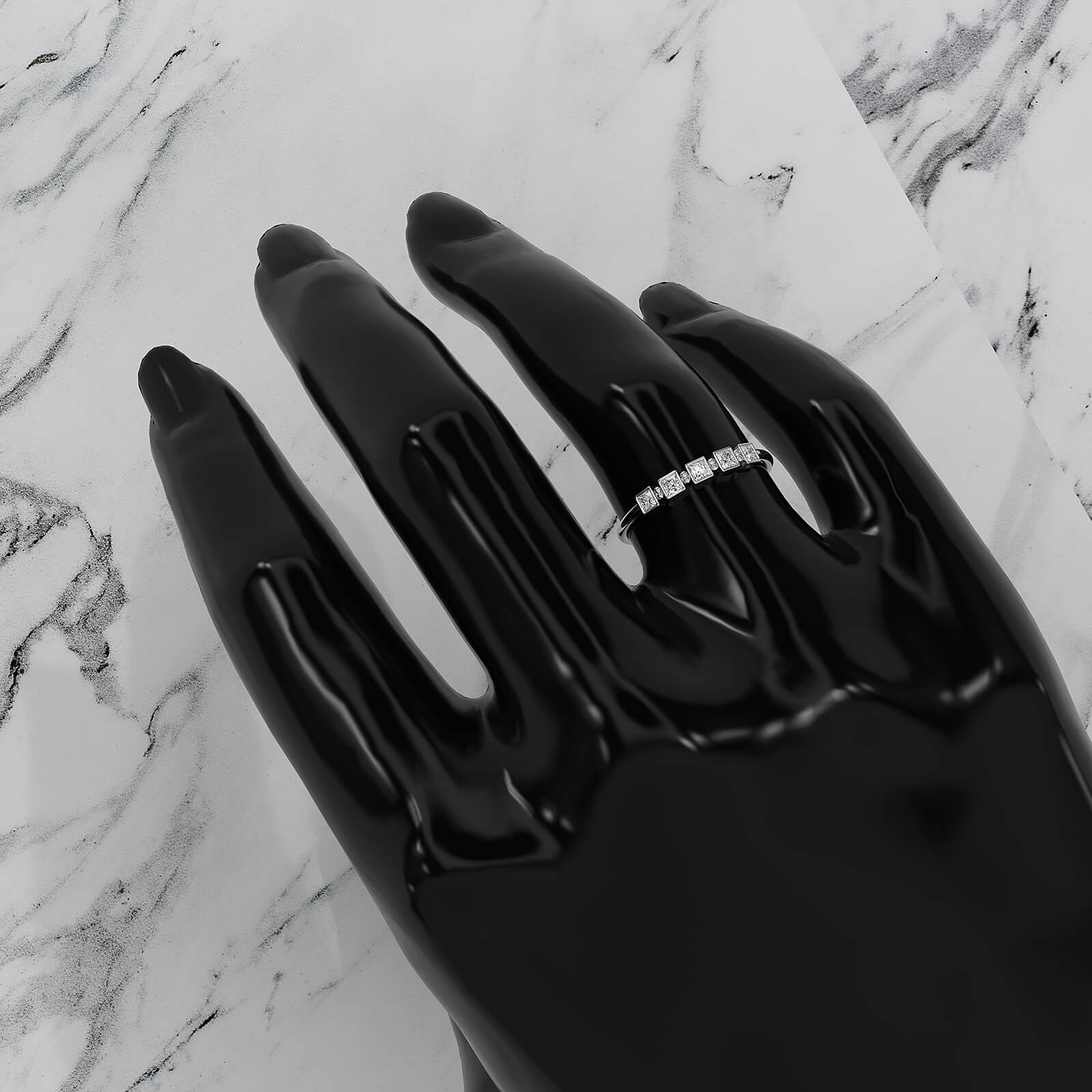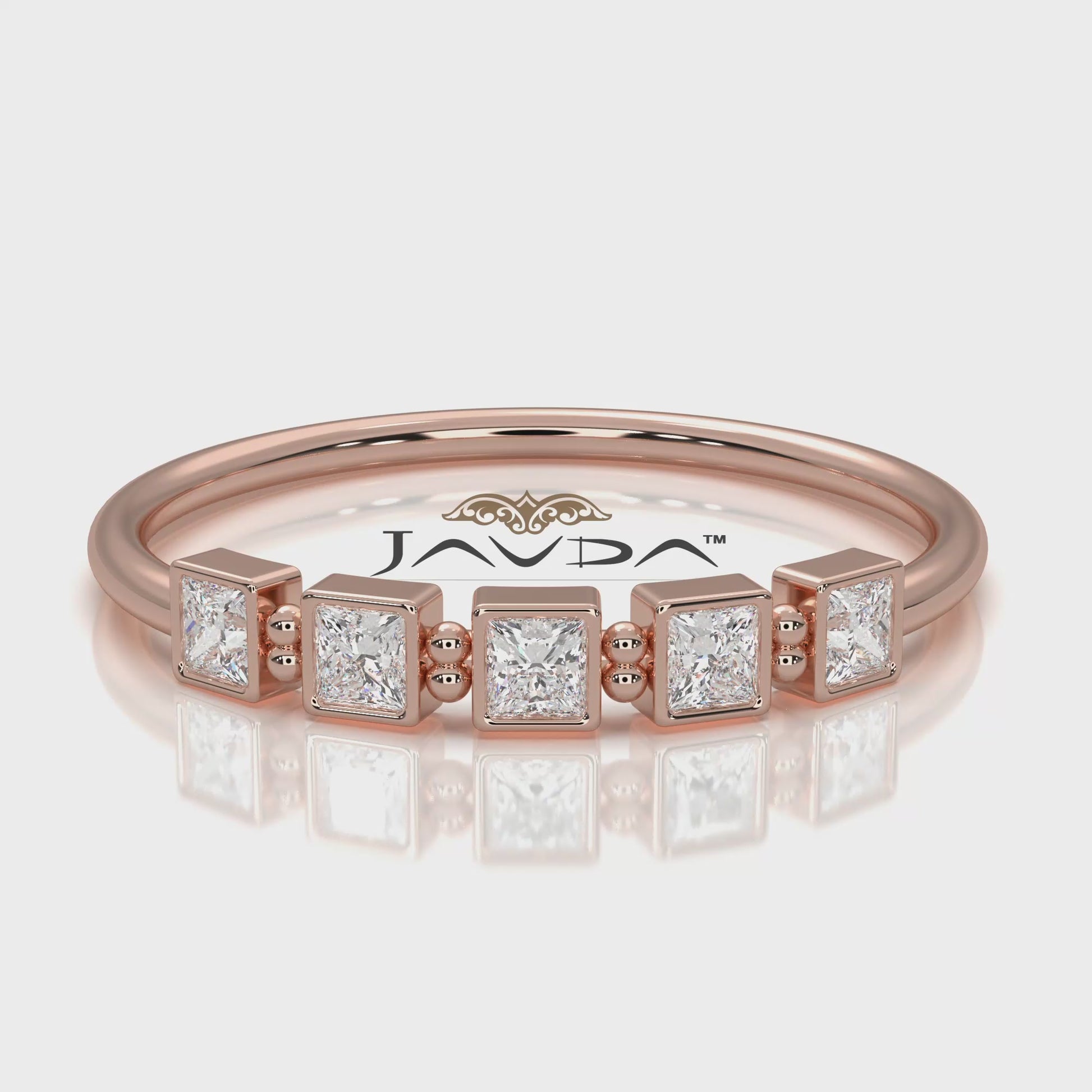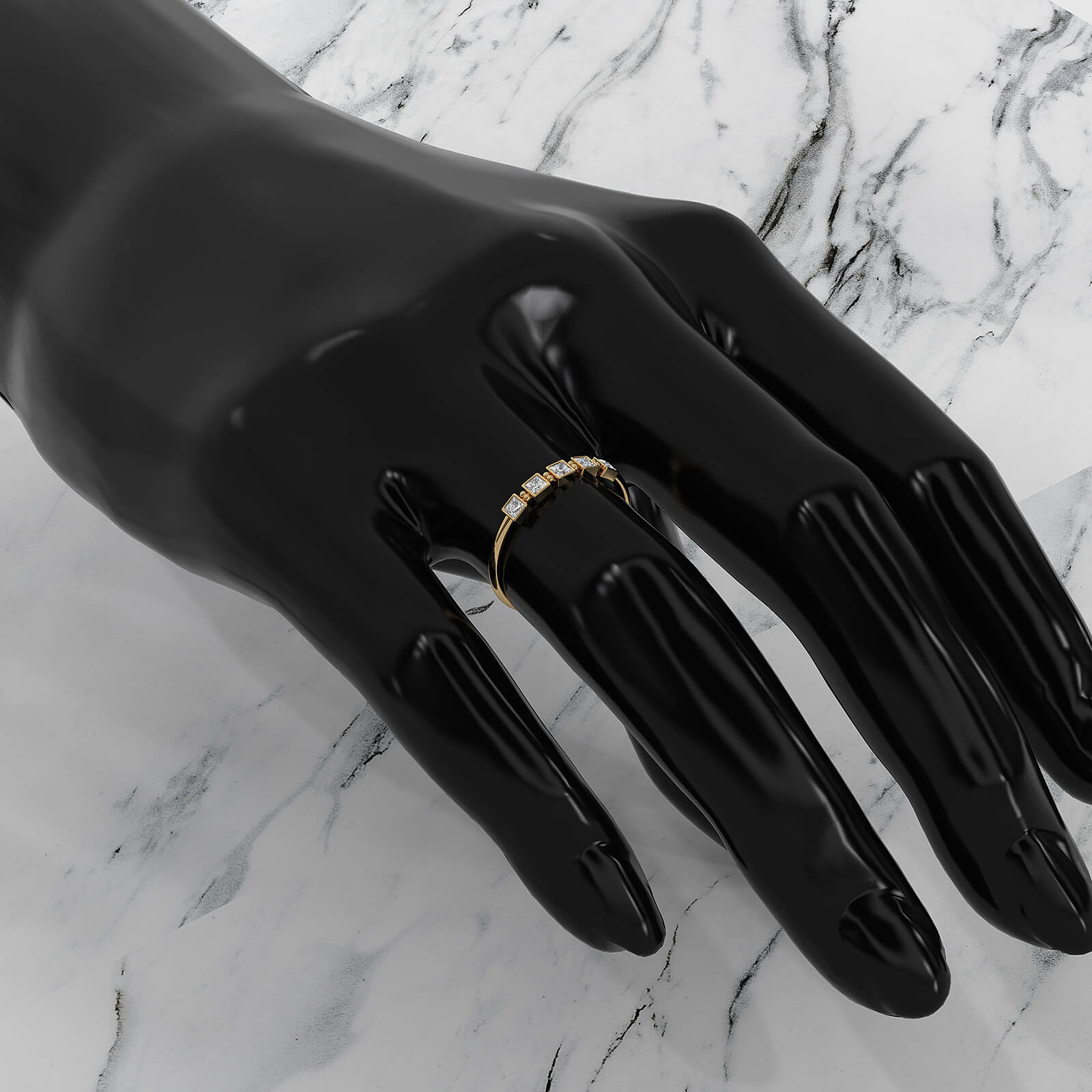 This modern and delicate 5 stone bezel set cluster princess lab grown diamond round metal design fashion ring.