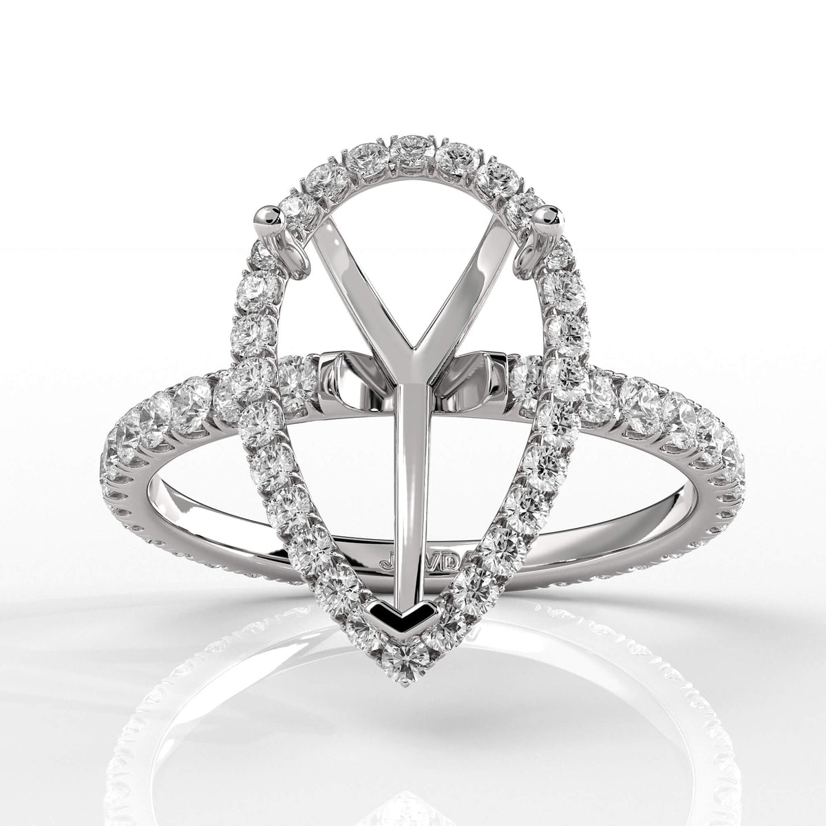 French Pave Pear Halo Semi Mount Diamond Engagement Ring 14k White Gold 0.59Ct