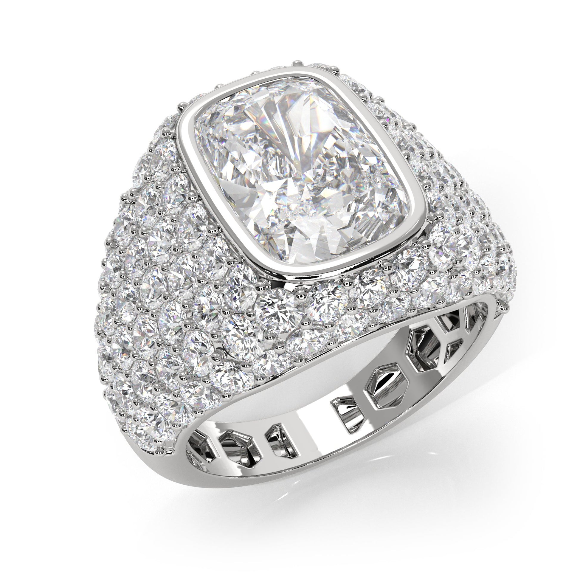 Bold and luxurious, this Cushion Men's Diamond Dome Ring in 14K White Gold showcases 8.56ctw of IGI Certified cushion-cut diamonds. A striking statement piece designed for timeless elegance and modern sophistication.