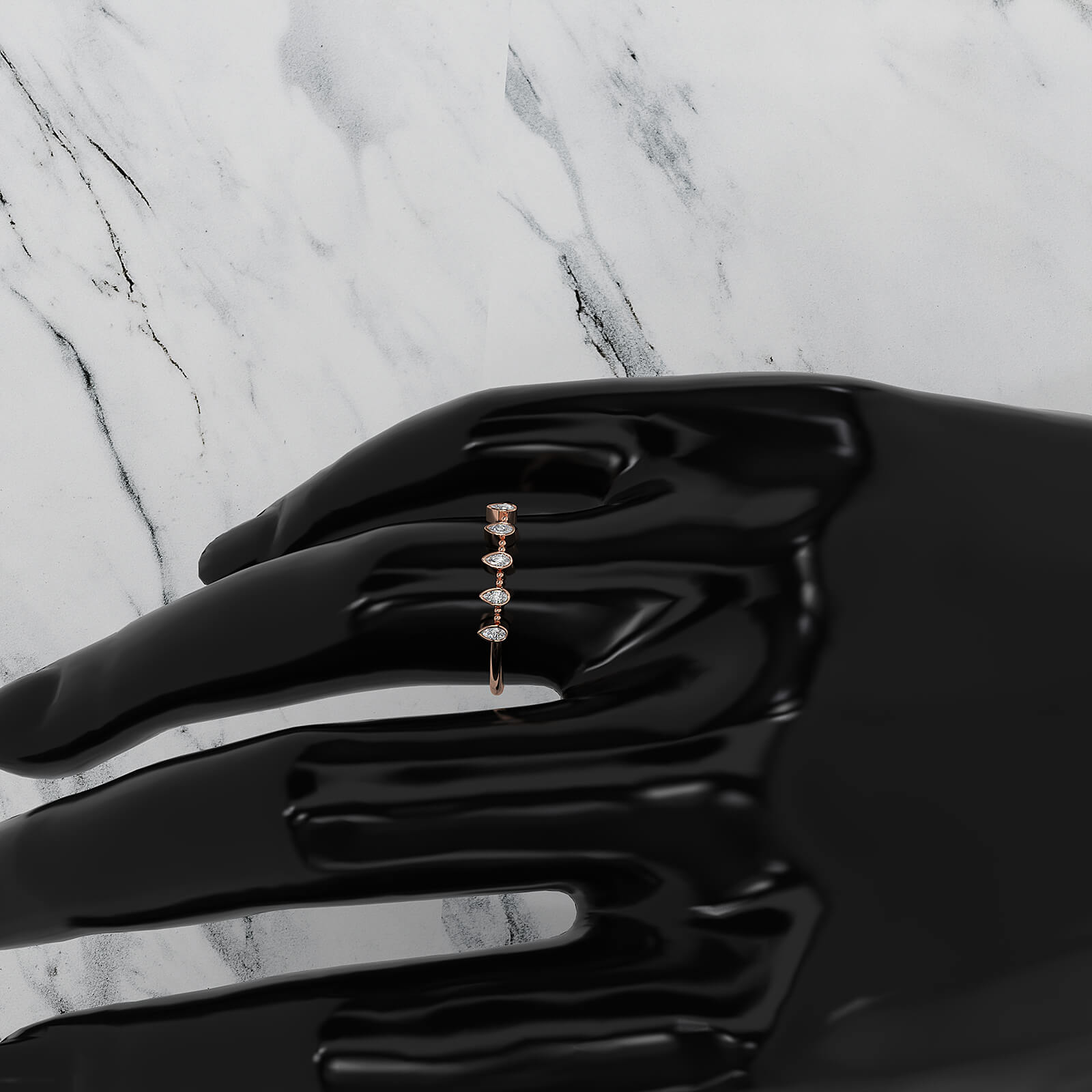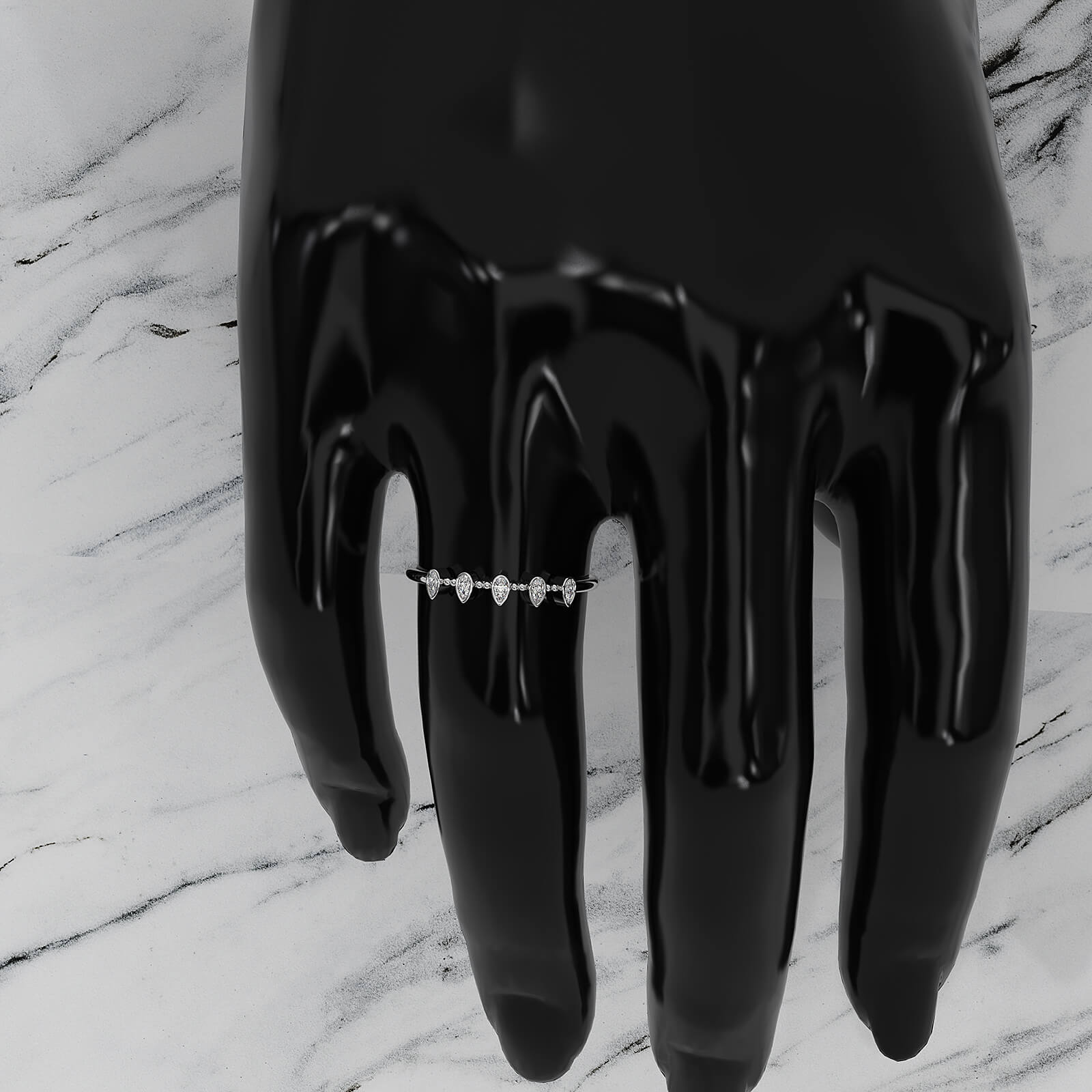 Minimalist 5 Stone Pear Lab Diamond bezel Set Promise Ring 0.08ctw.