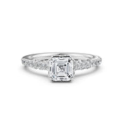 Asscher Women's Lab Grown Diamond Engagement Pave Set Ring - Lab Grown / 1.00 Ctw. / 14k White Gold